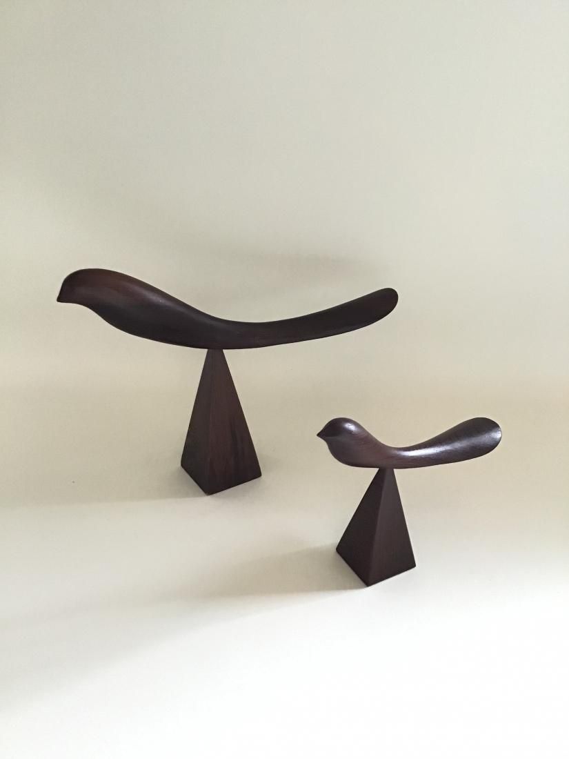 写真2、3枚目は手前が小鳥のサイズです。奥は親鳥のサイズ(別売)です。