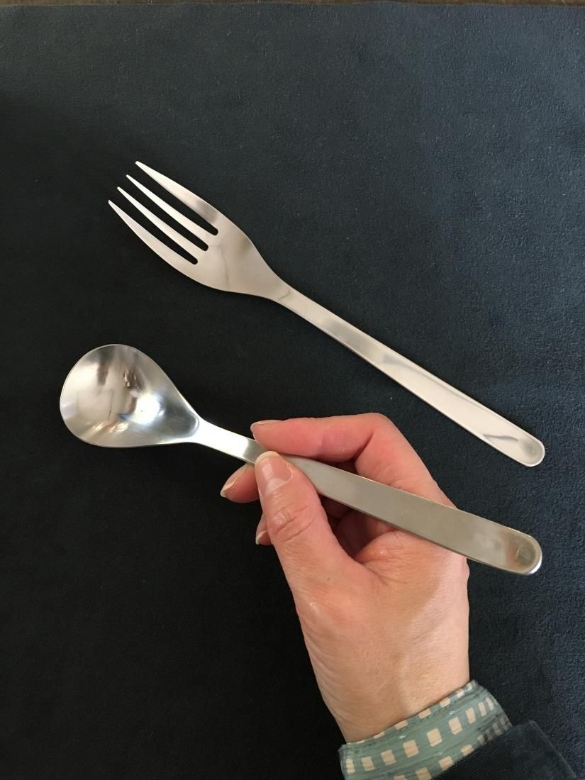 テーブルスプーンは一般的なものよりも丸に近い形で、