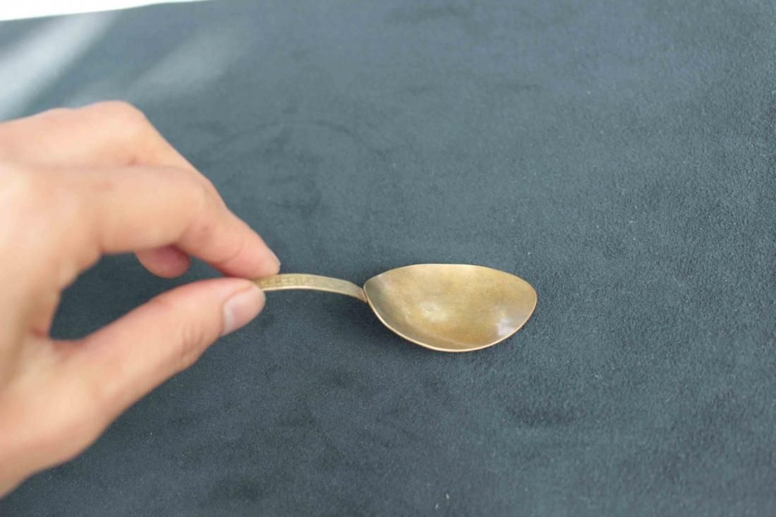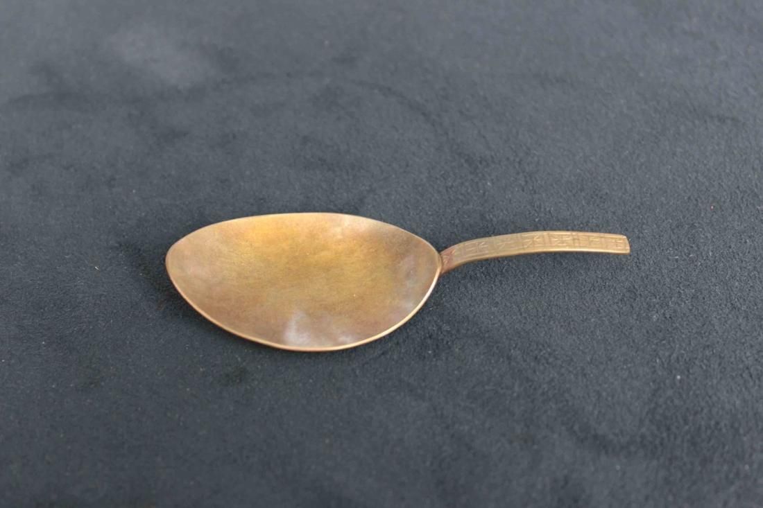 真鍮板を切り出し、先端の仕様が様々な鏨(たがね)を使い分けて、繊細な模様を打ち出された匙。