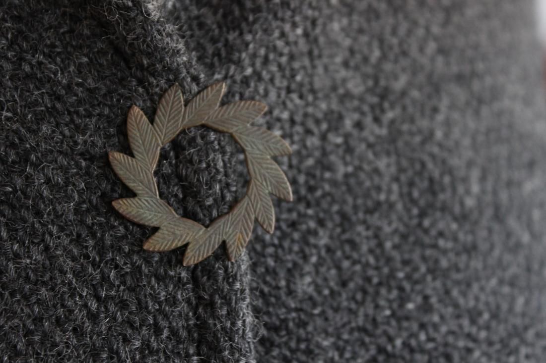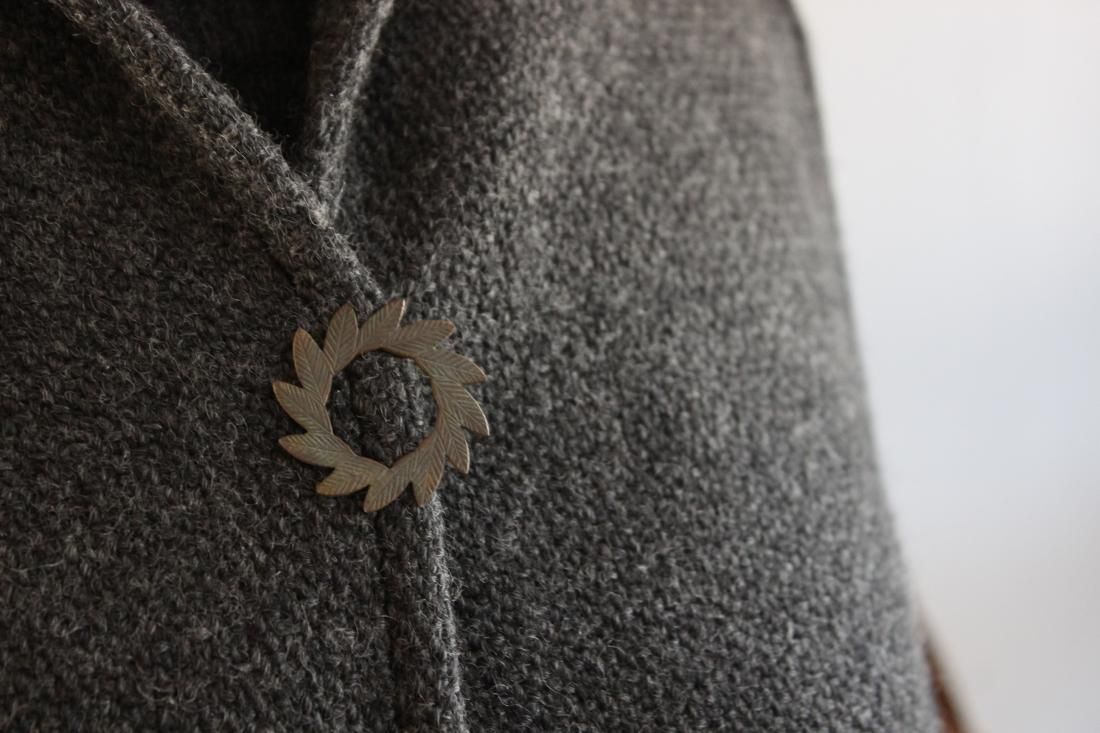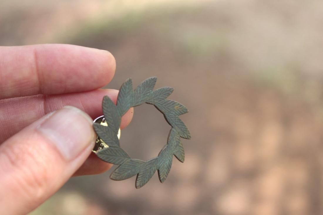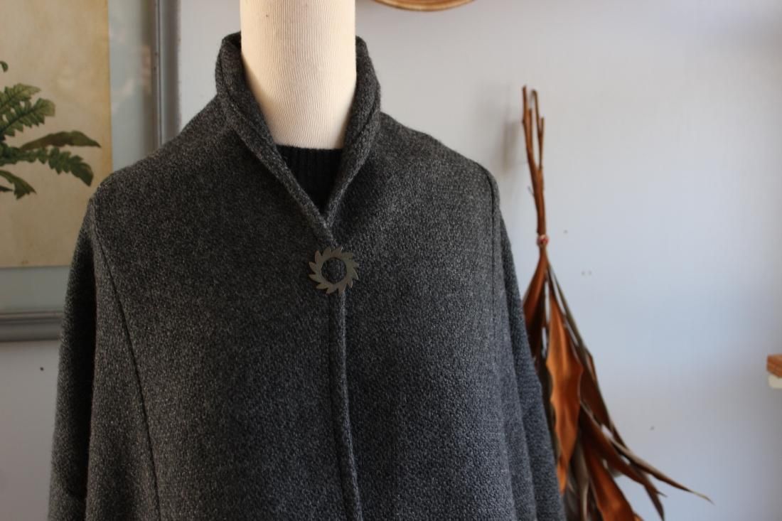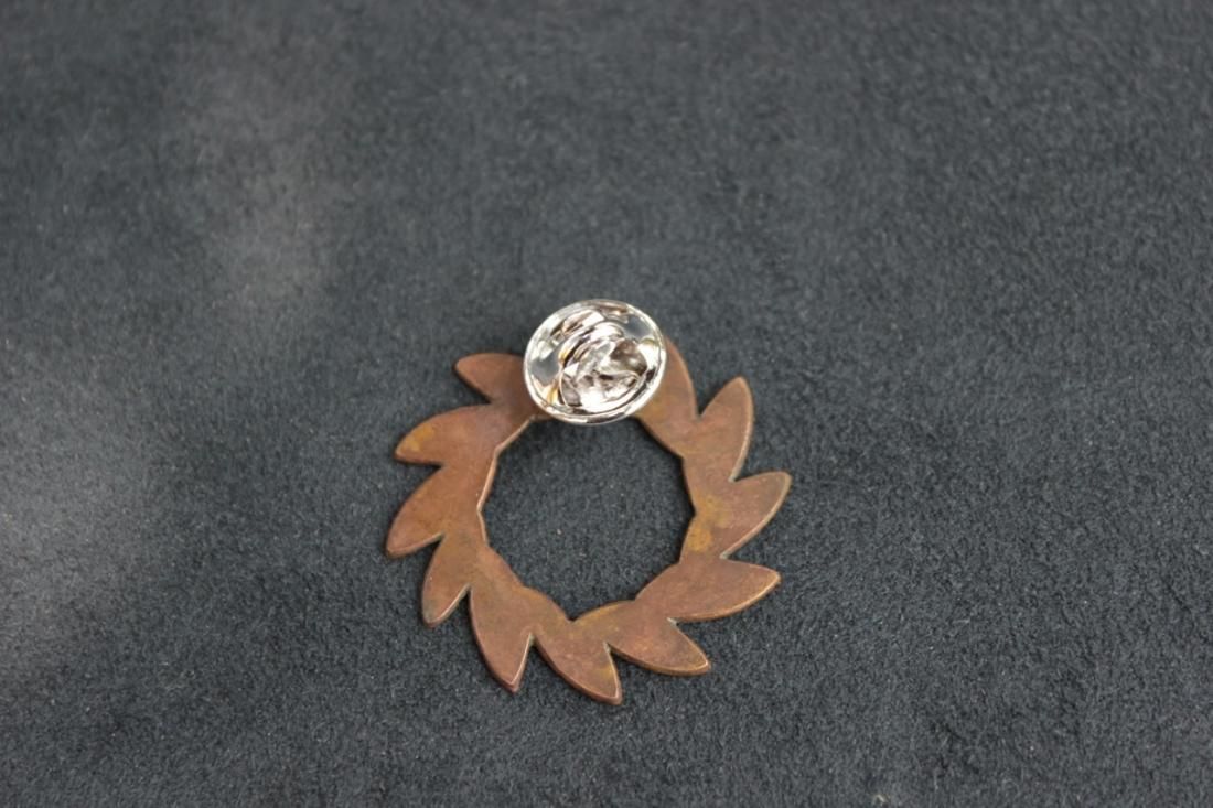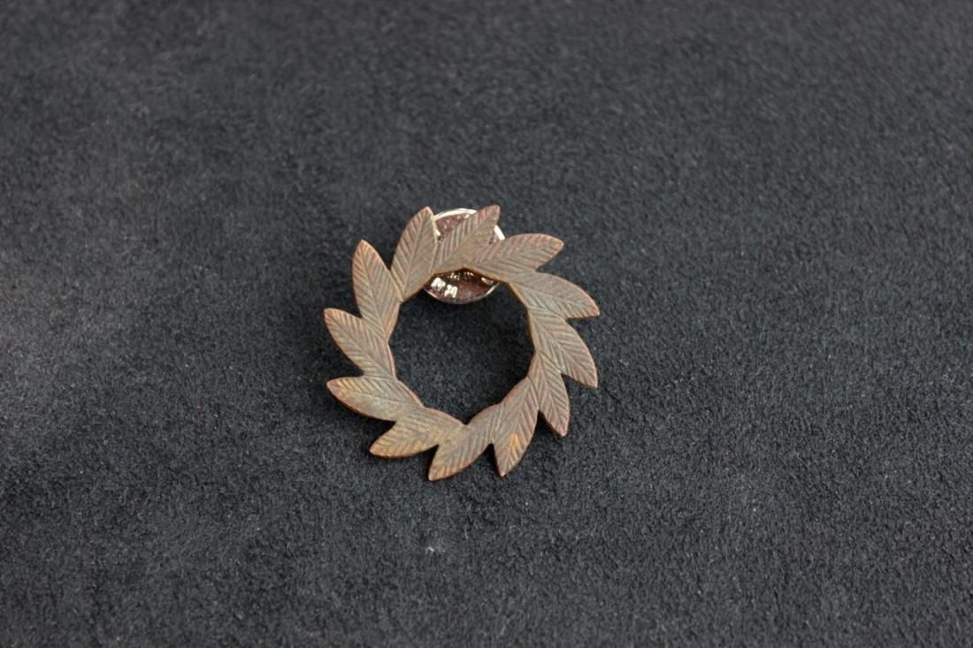 錆び加工が施されています。留め具はピンブローチ仕様になっています。