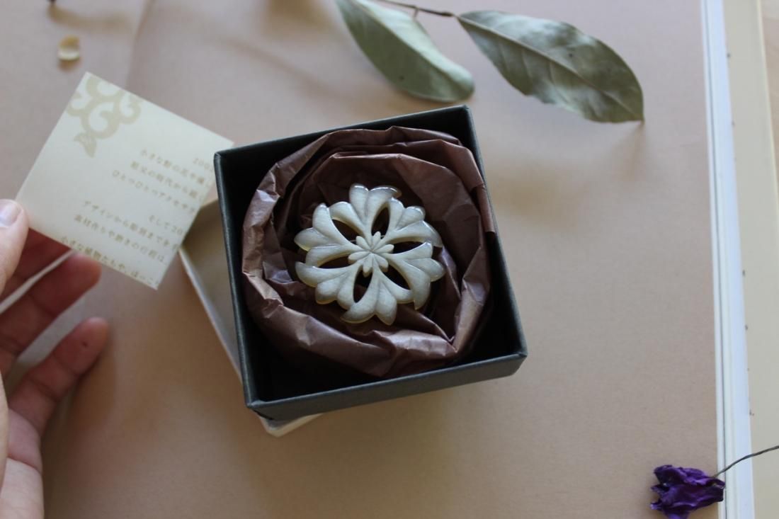 放射状に広がる花びら、繊細で優美な矢車菊をシンプルに表現された、上品な印象のブローチ。