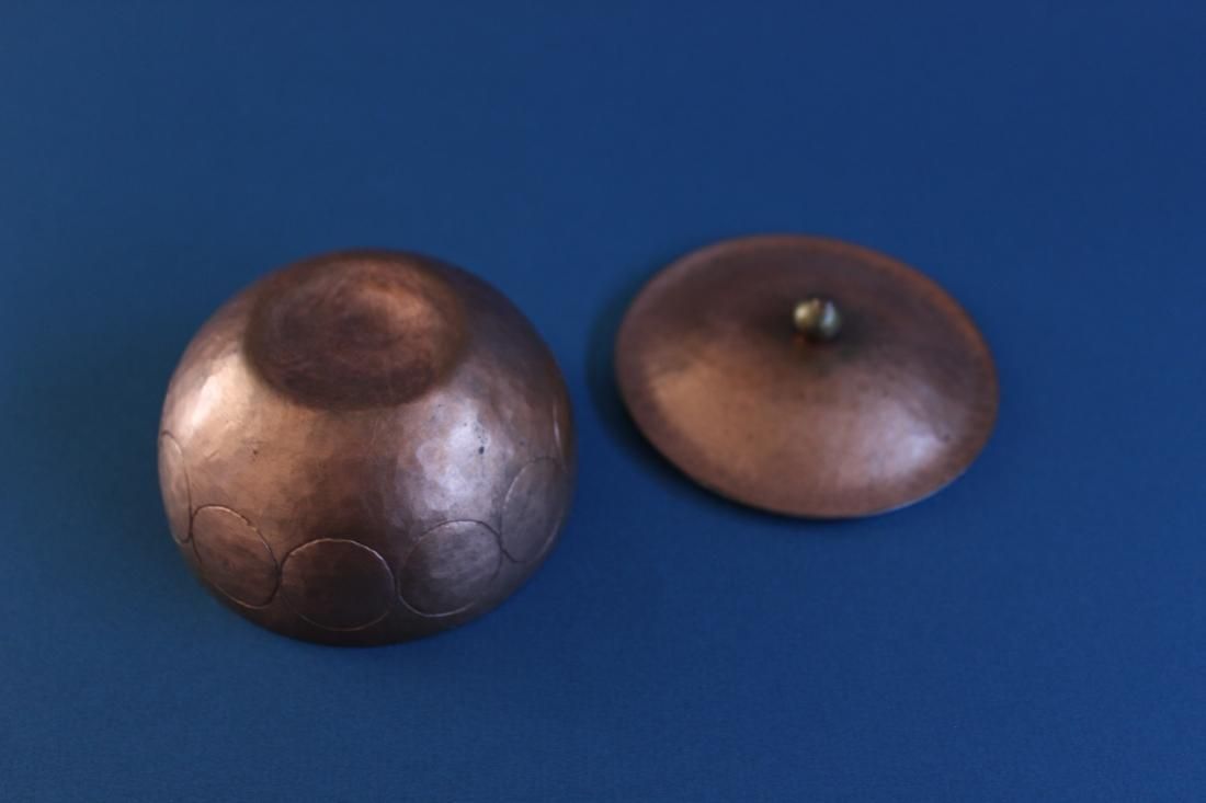 ひとつひとつ打たれた点や線、道具を使って丹念にたたくという作業と時間の重なり、手仕事の美しさを暮らしの中で感じることができる豊かな作品です。