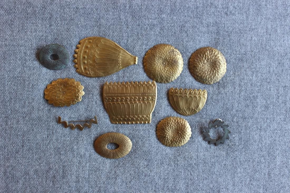 真鍮板を切り出し、先端の仕様が様々な鏨(たがね)を使い分けて、繊細な模様を打ち出されています。