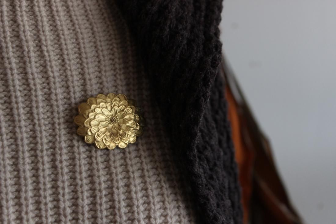 何枚もの花びらを持つ花のようにも、夜空に咲く花火のようにも見えるデザインは、和装にもよく似合いそうですね。
