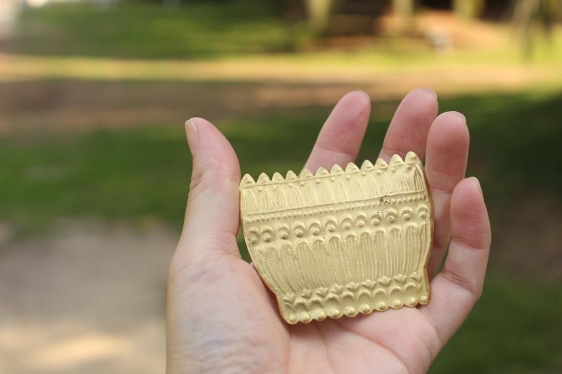 真鍮板を切り出し、先端の仕様が様々な鏨(たがね)を使い分けて、繊細な模様を打ち出されています。