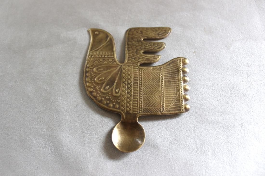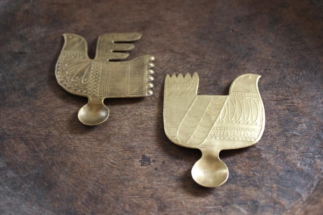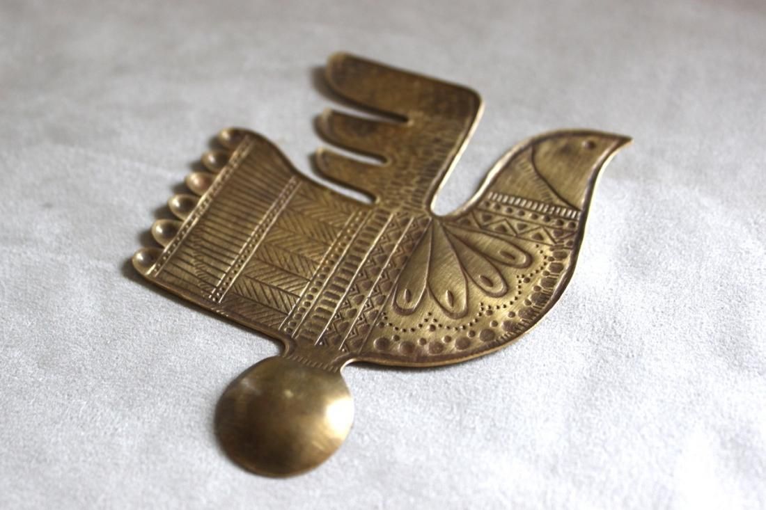 真鍮板を切り出し、先端の仕様が様々な鏨(たがね)を使い分けて、繊細な模様を打ち出されたさじ。