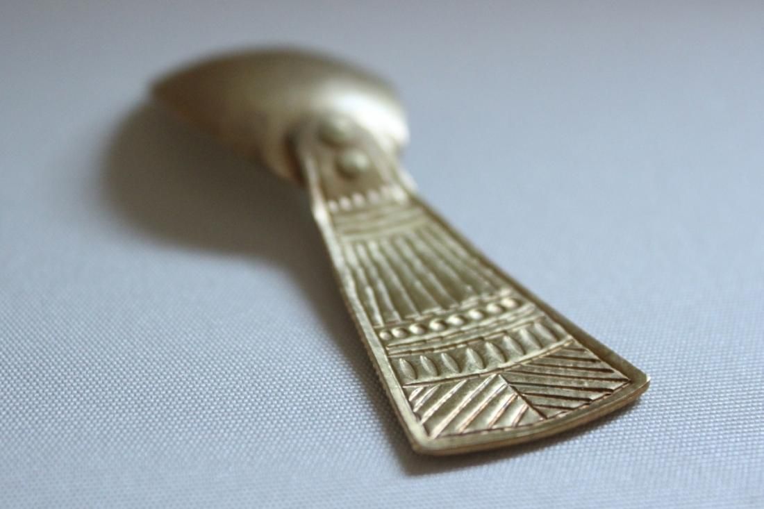 真鍮板を切り出し、先端の仕様が様々な鏨(たがね)を使い分けて、繊細な模様を打ち出されています。