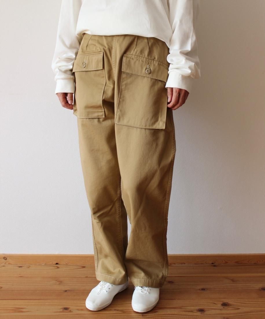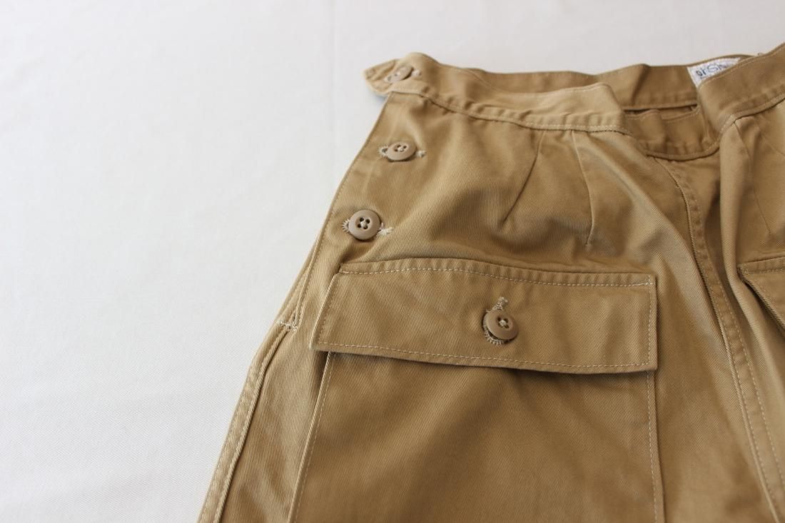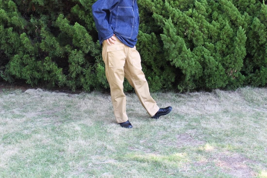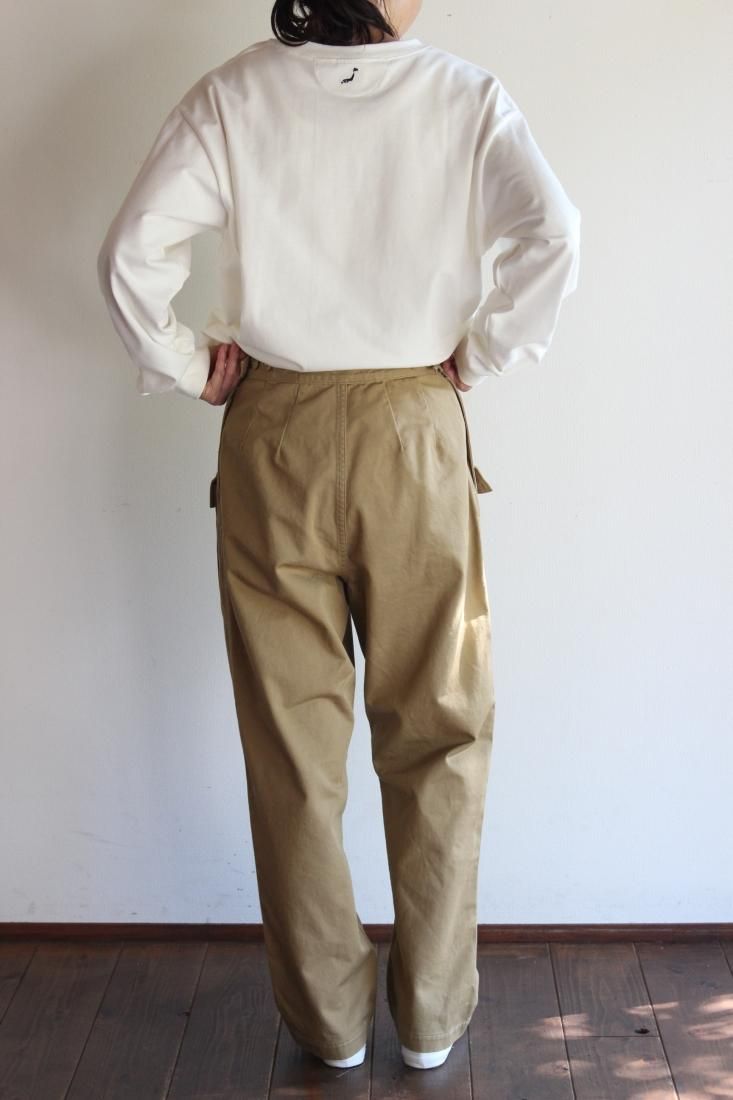 or Slow オリジナルのチノで仕立てられた、個性的なデザインのカーゴパンツ。