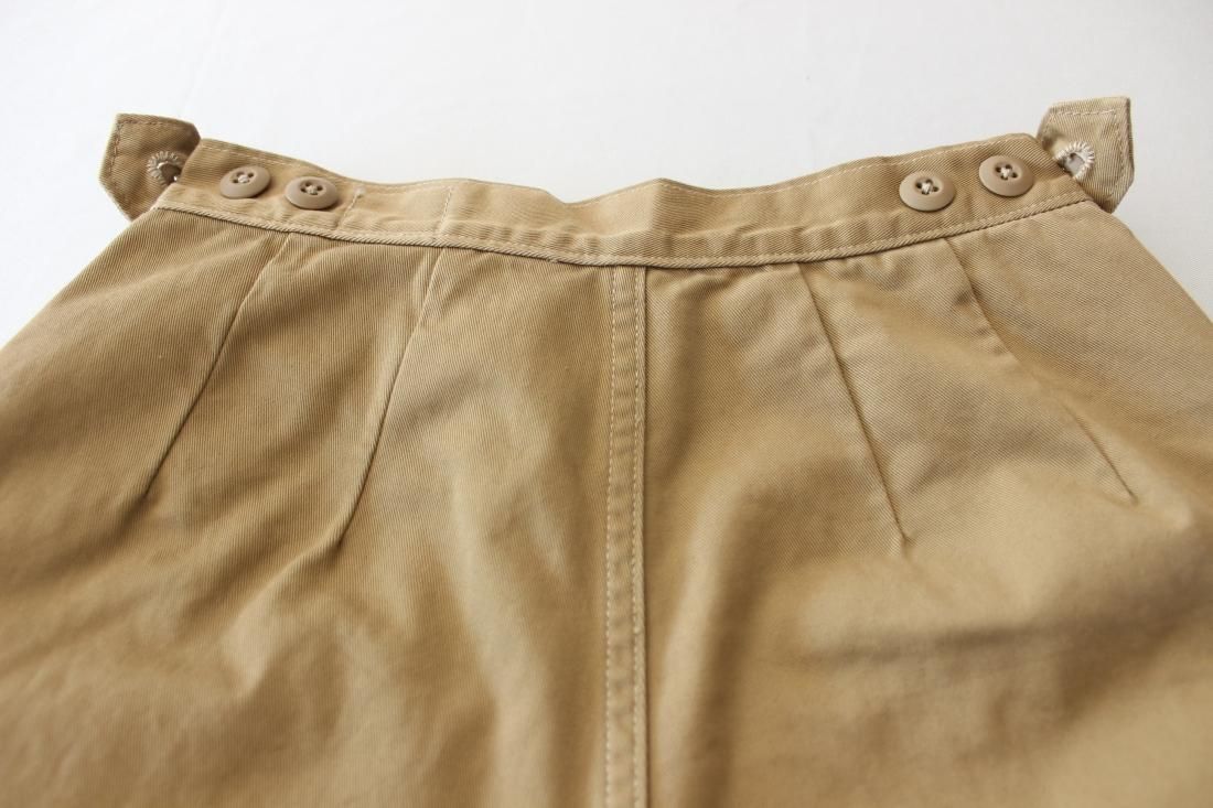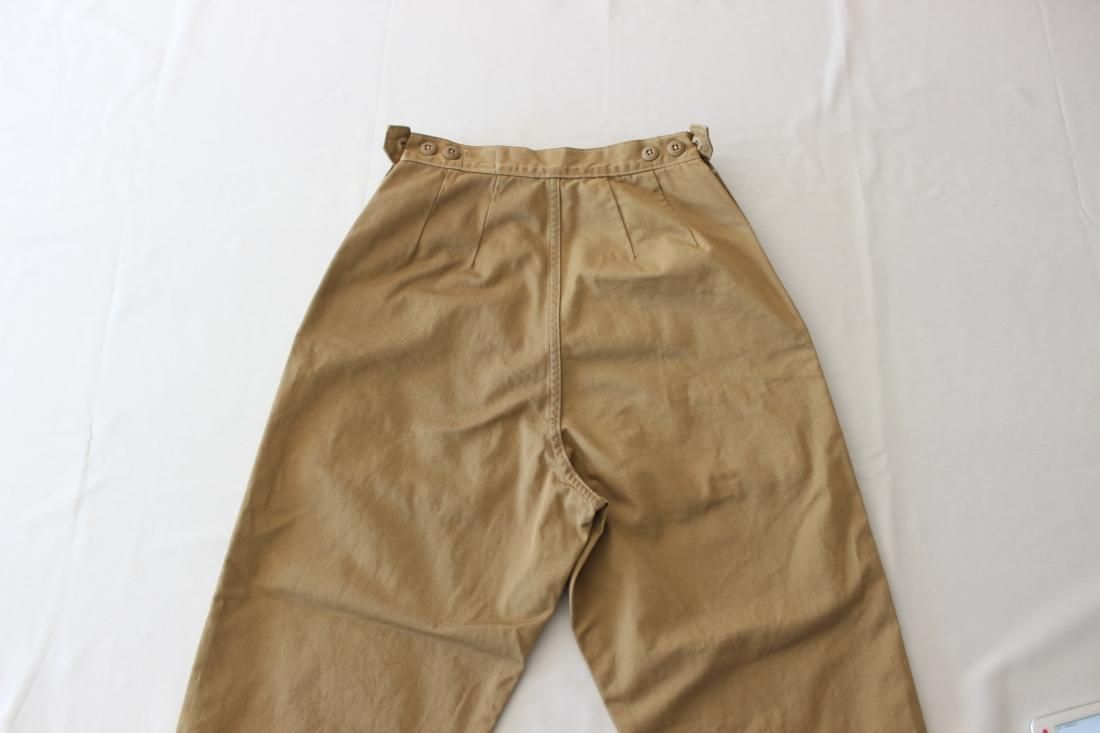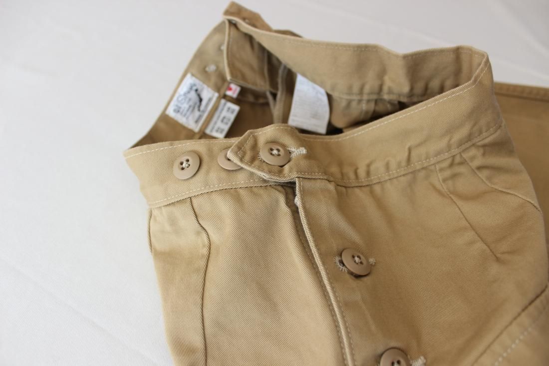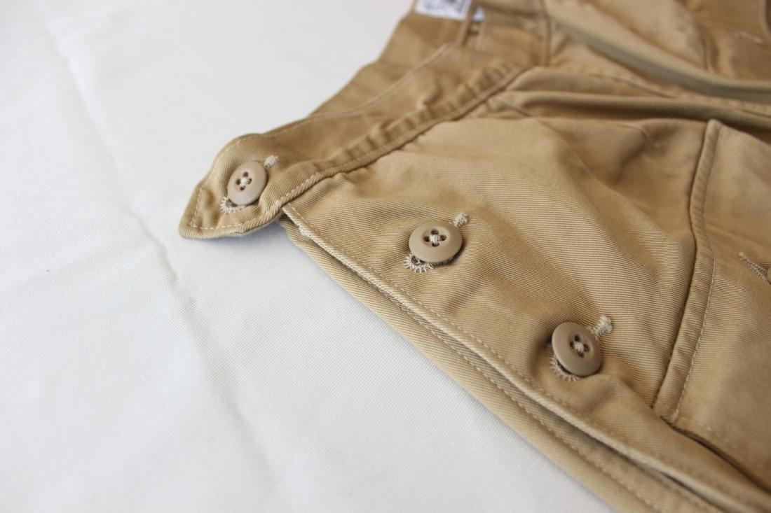 ベルトループがなく、ウェストアジャストのボタンでサイズ感を調整します。