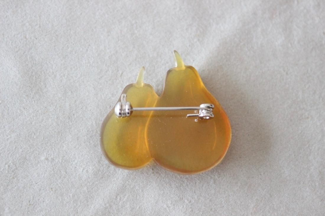 透明感のある素材の表情が印象的な洋なしのブローチです。
