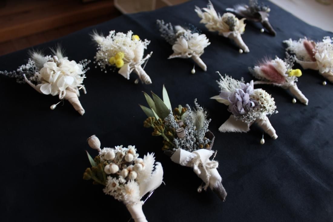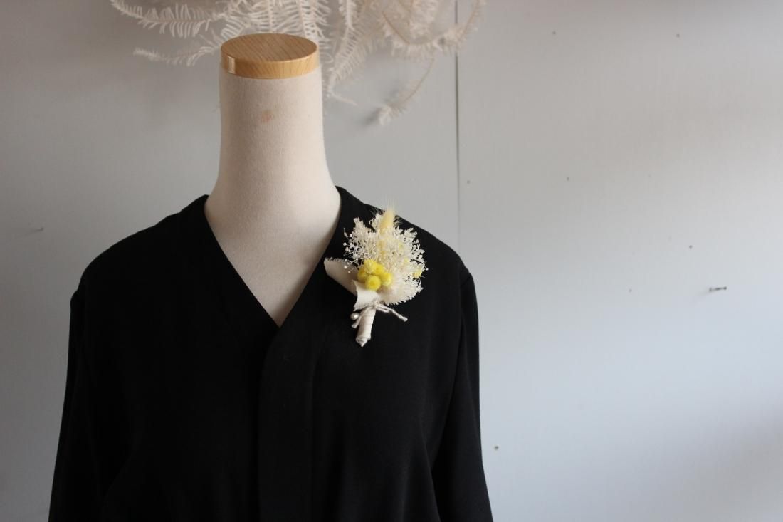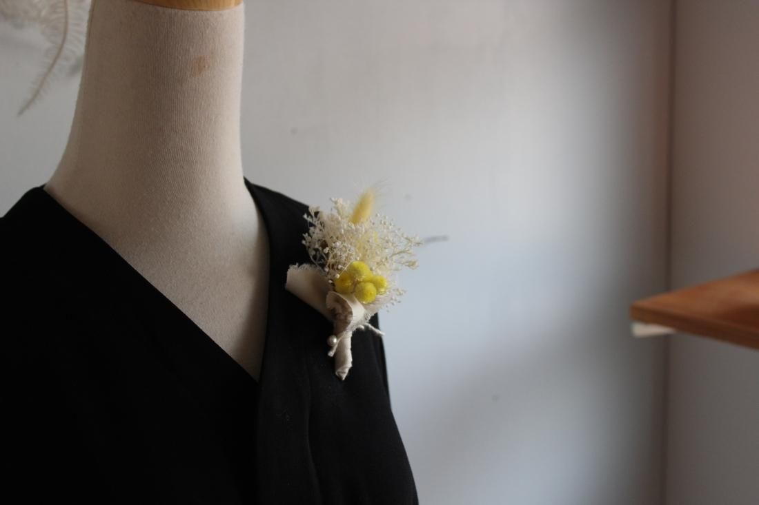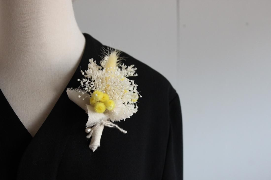プリザーブドフラワーでつくられた小さなブーケ、明るい黄色が映える色合いは大人の可愛さを感じさせます。