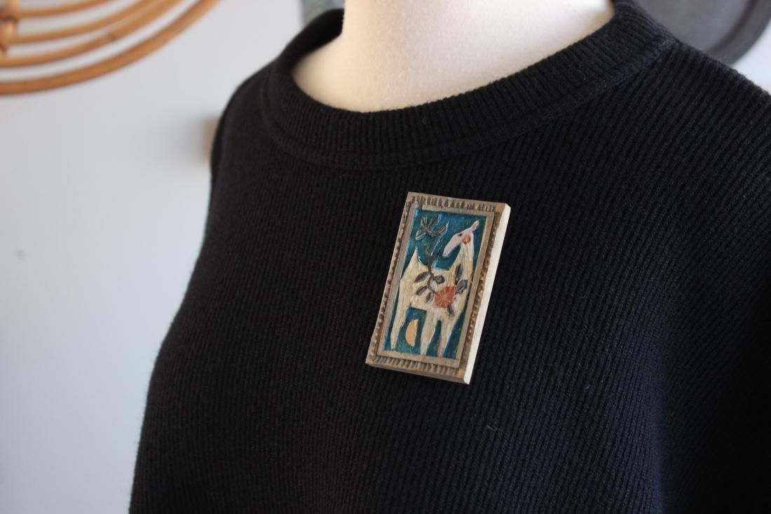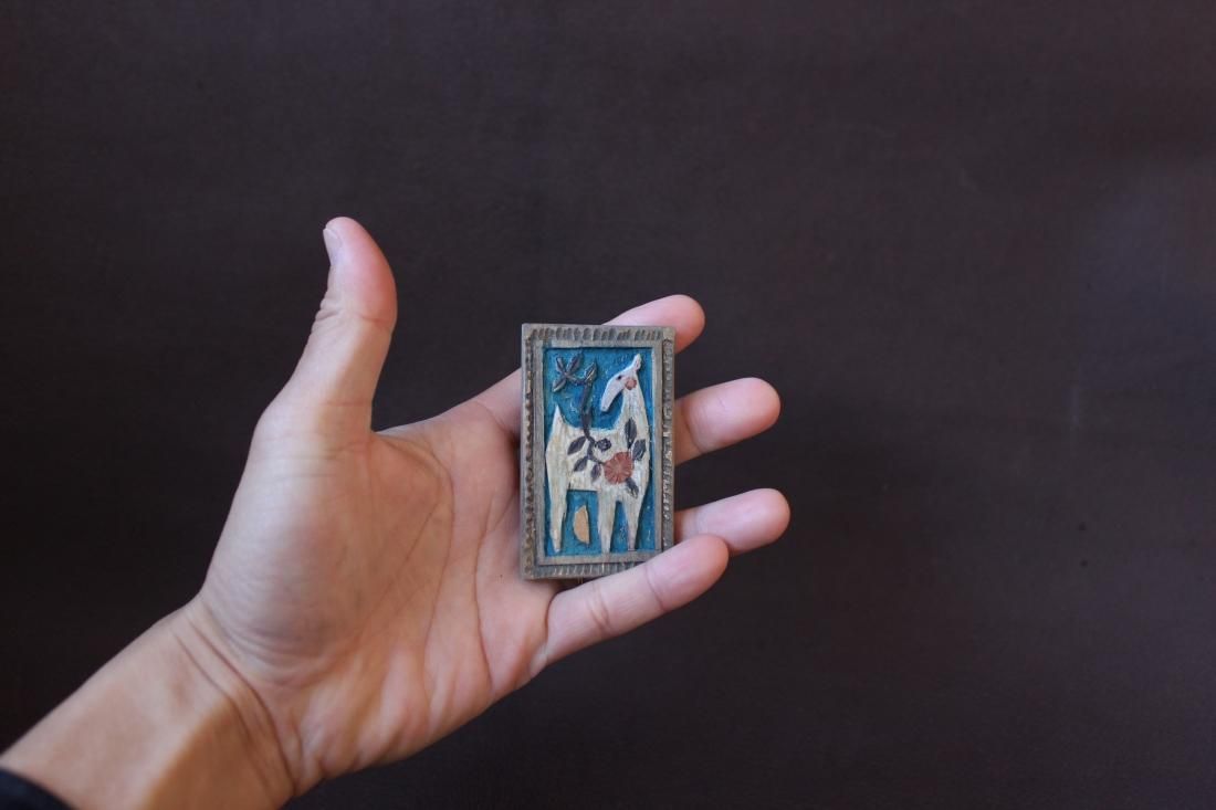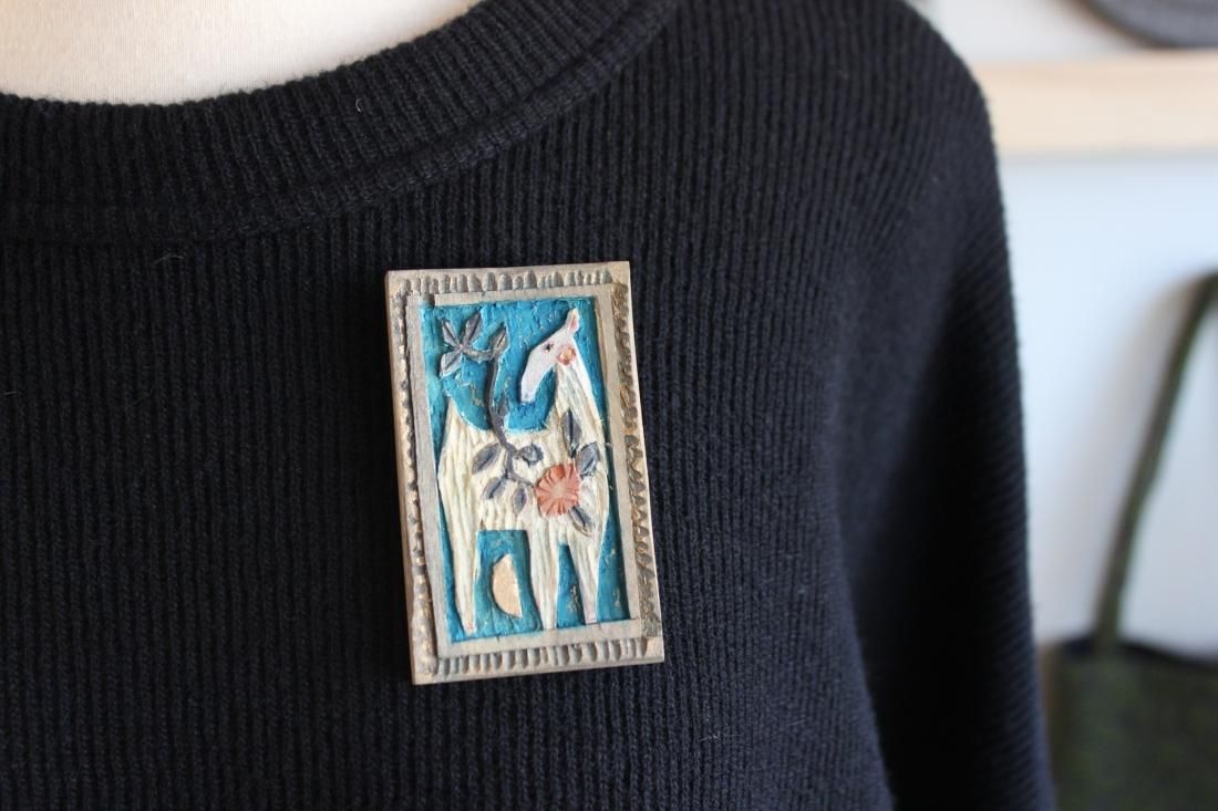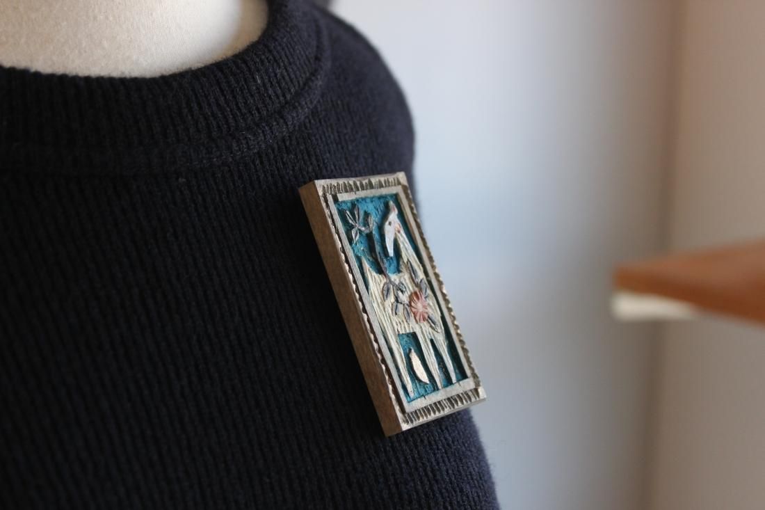 尾道在住の絵描き 白水麻耶子さんの木彫りのブローチです。