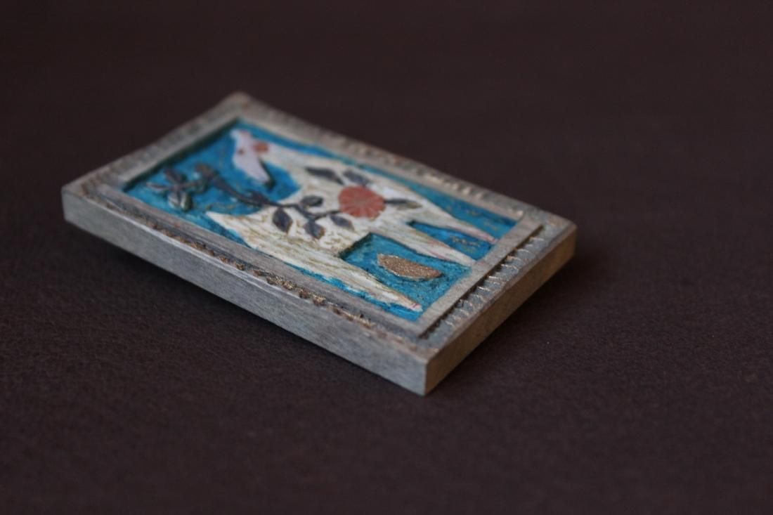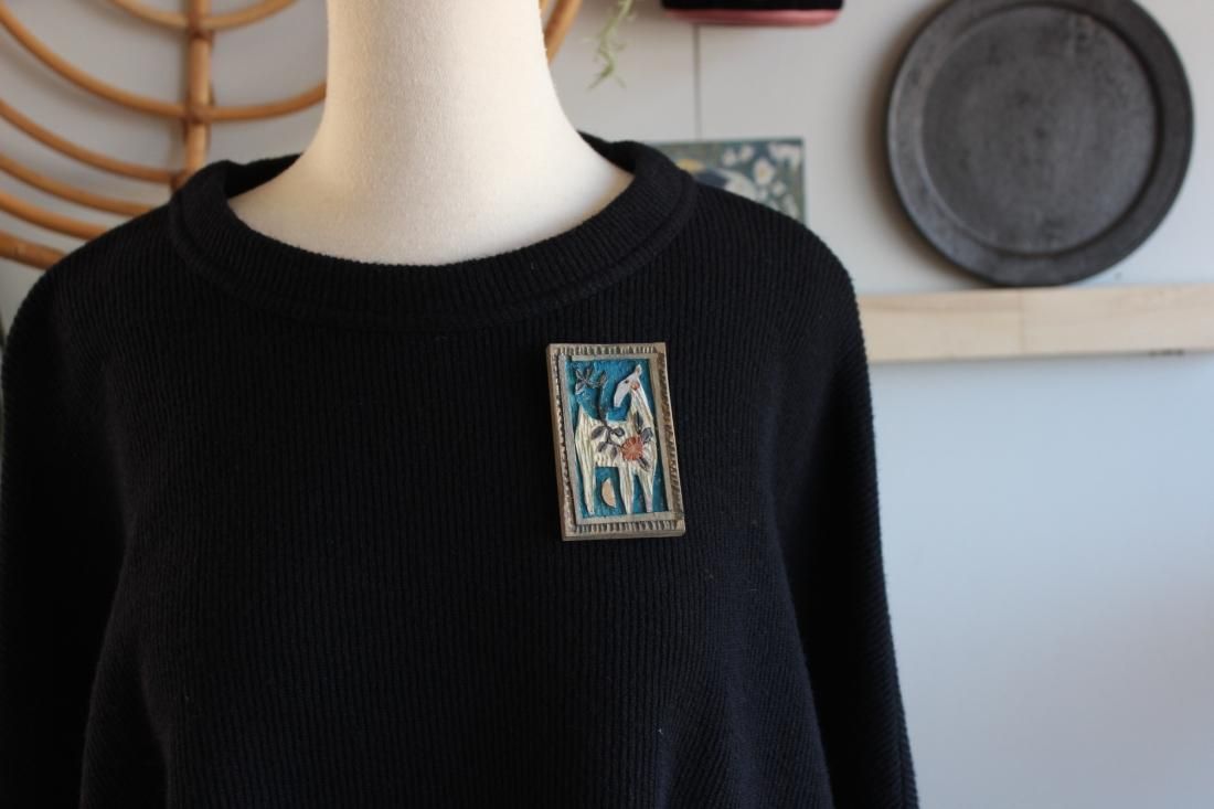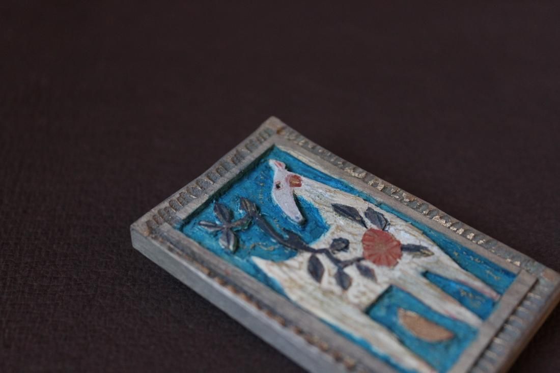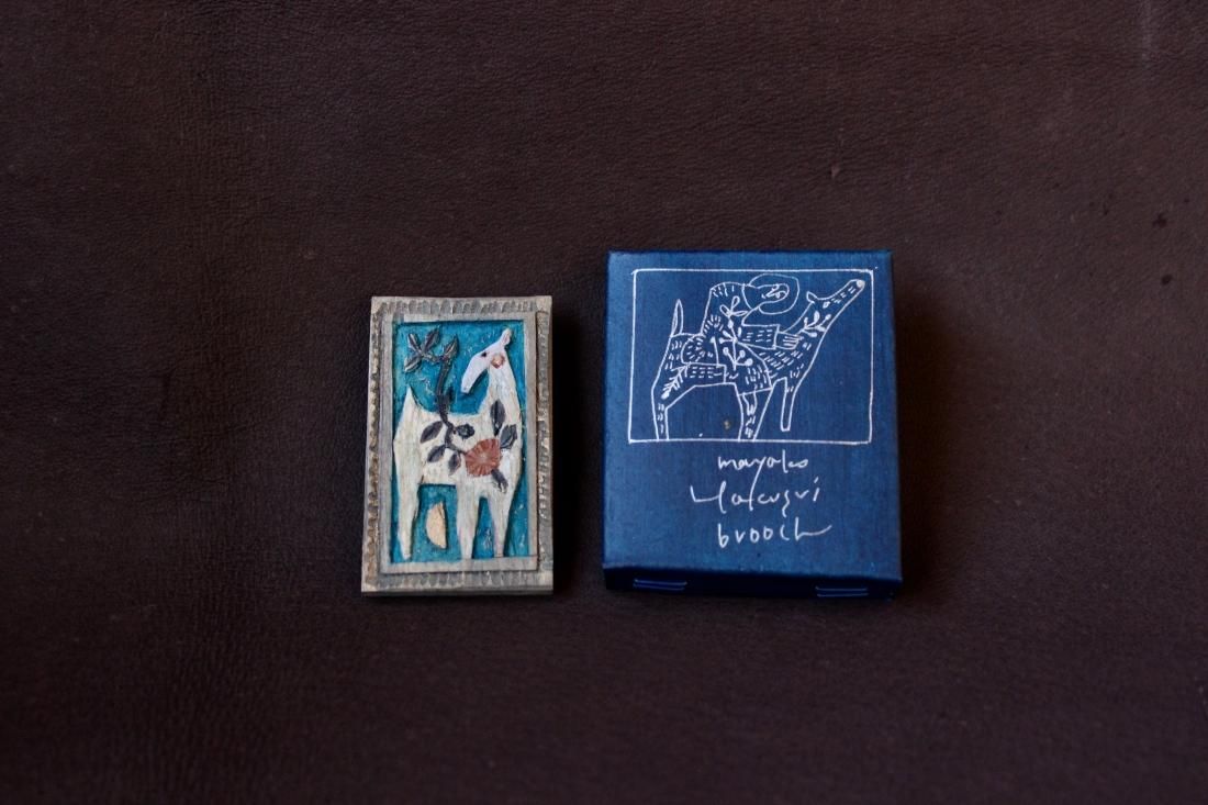 尾道在住の絵描き 白水麻耶子さんの木彫りのブローチです。