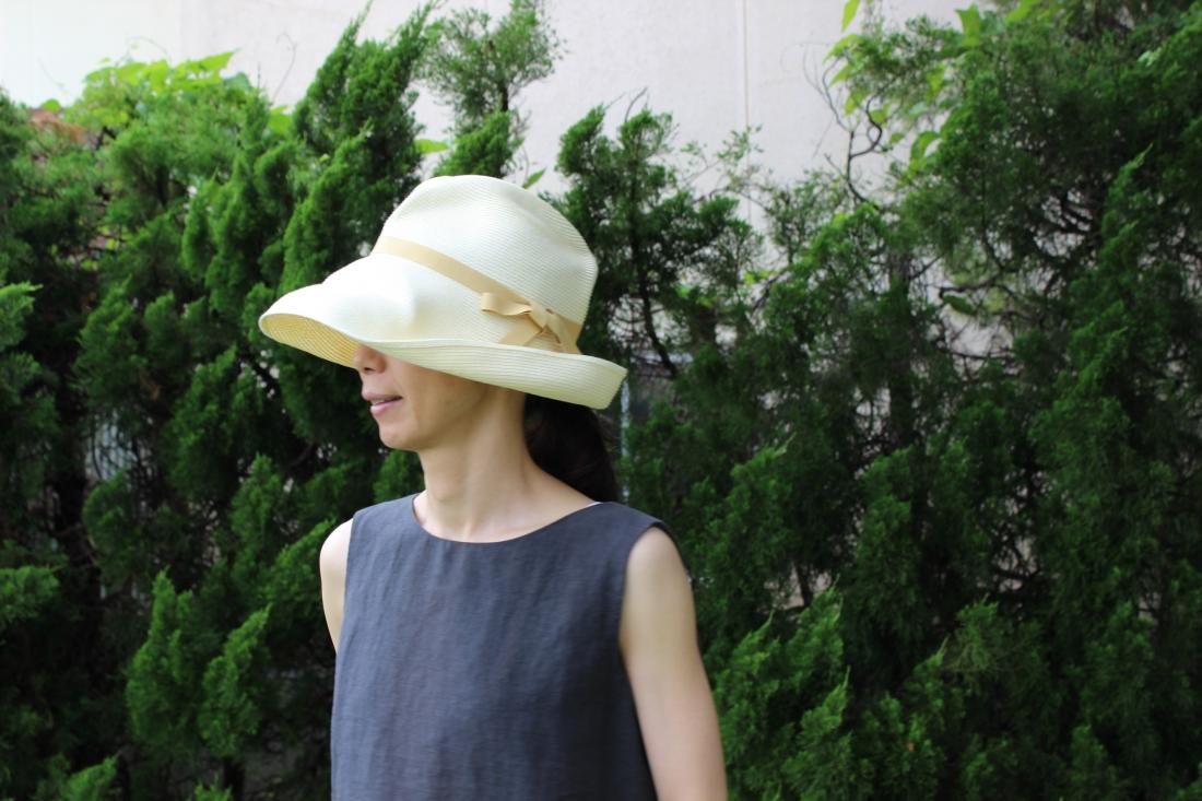ナチュラルな素材感に天然コットンのリボンを合わせた人気のボックスドハット。