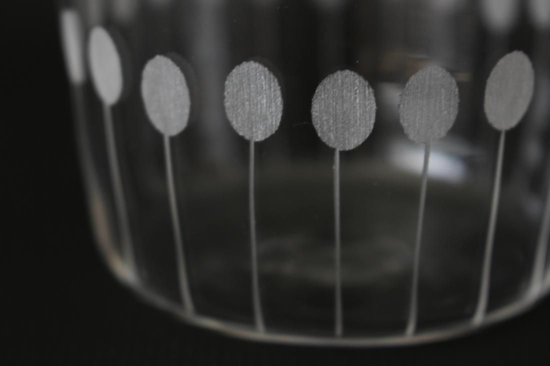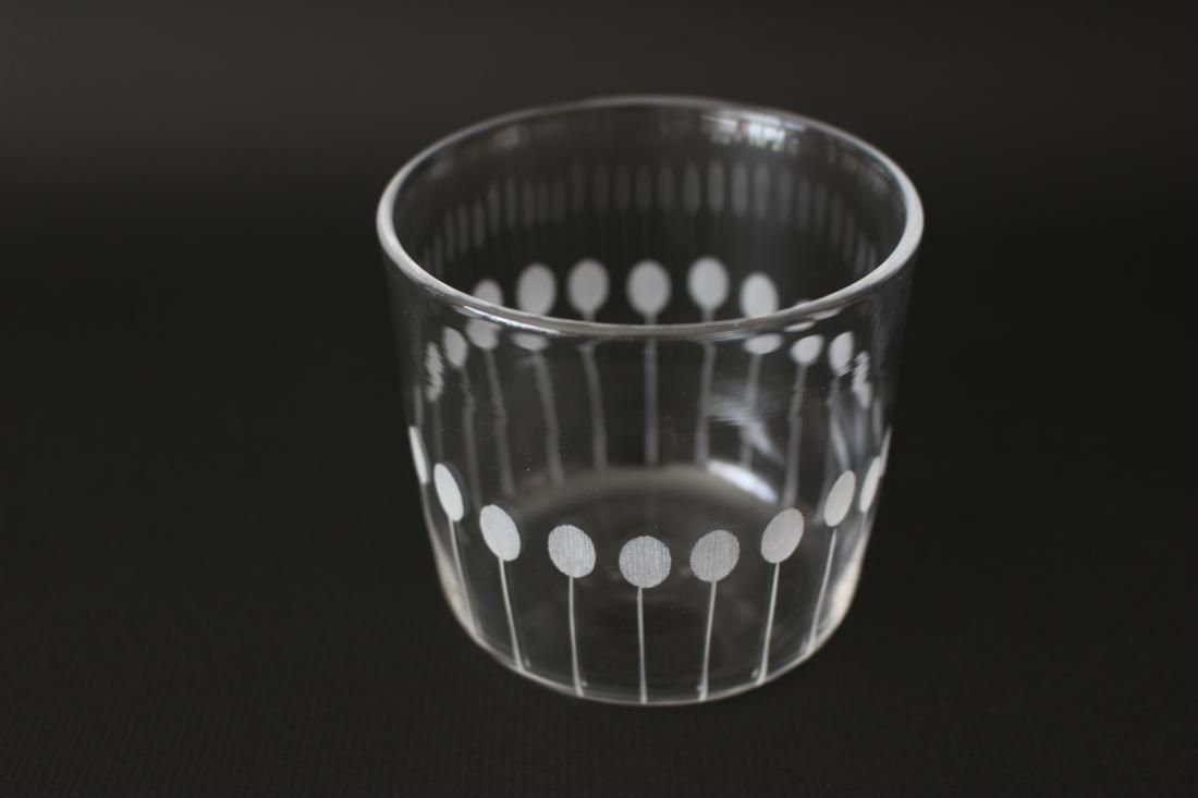 クリアなガラスに伝統的な技法を用いてふんわりとしたオリジナルの模様が描かれています。デザートの盛り付けや、花器としての使用もおすすめ。