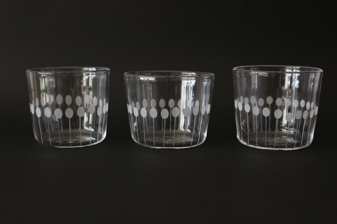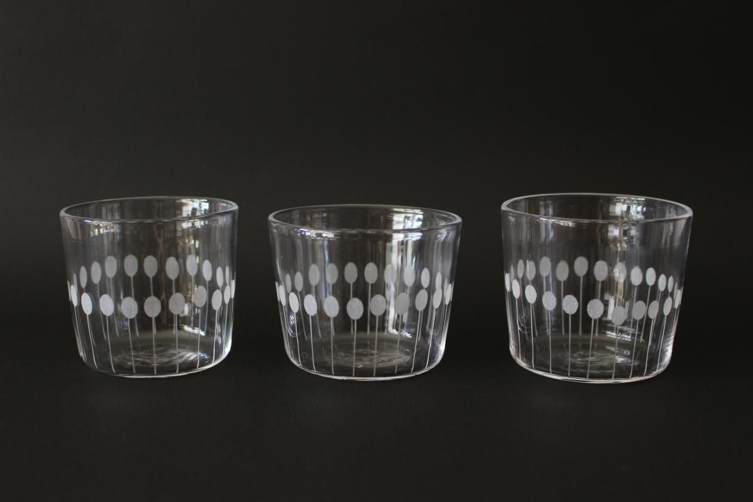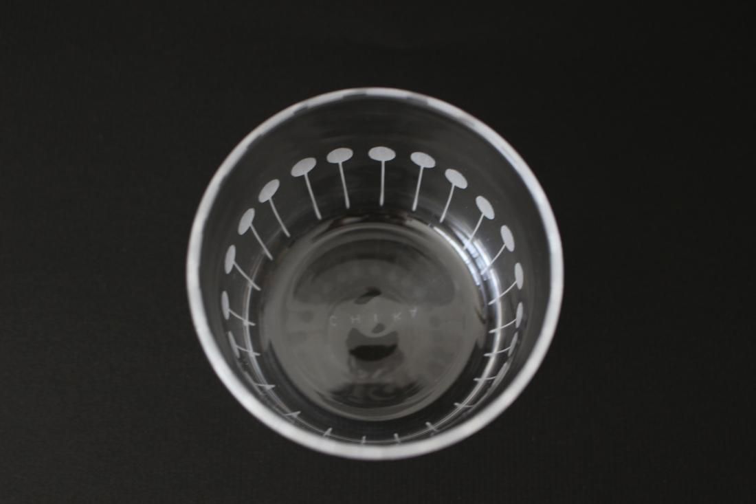 線と◯が並んでノスタルジックな雰囲気、あたたかみのあるガラスの作品です。