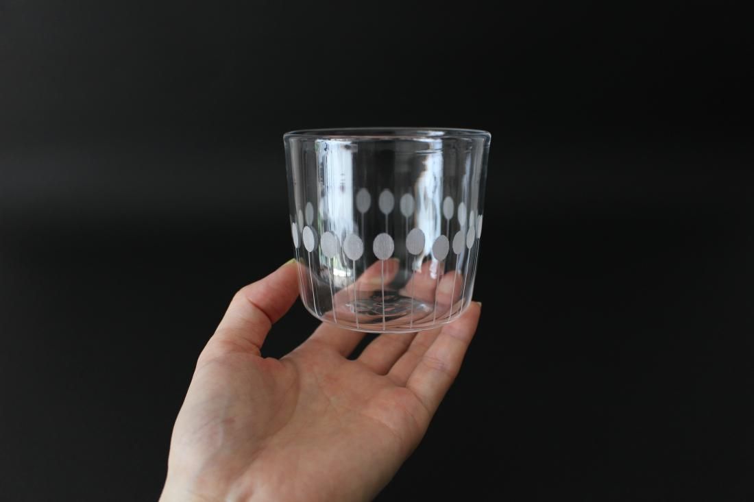 江戸切子などにも見られるパウダーカットが施されたカップ。
