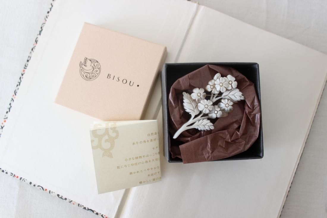 お庭の植木から、ひと枝いただいて身につけてみた。そんな 日常の一コマにありそうな感じを想像させるブローチ。