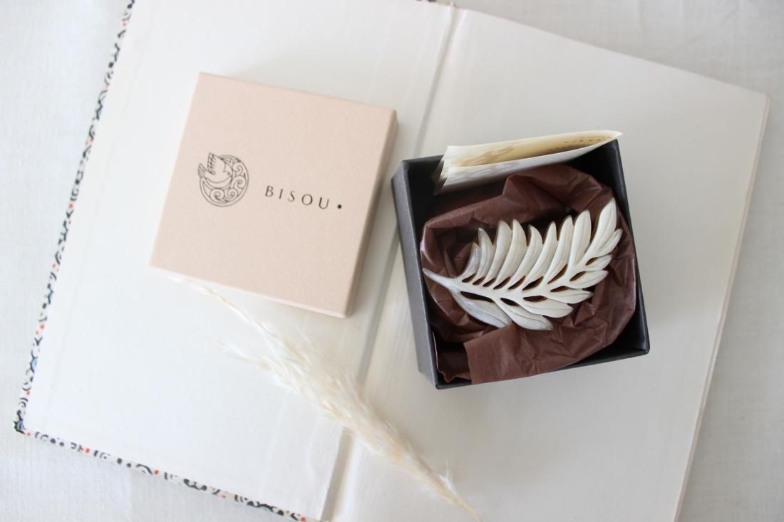 優しい風になびくような葉、そっと洋服に合わせてふんわりあたたかな気持ちに。