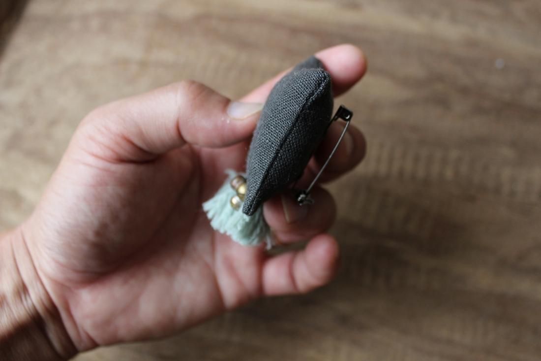 なんだか可愛い生き物のような、愛嬌豊かなブローチ。