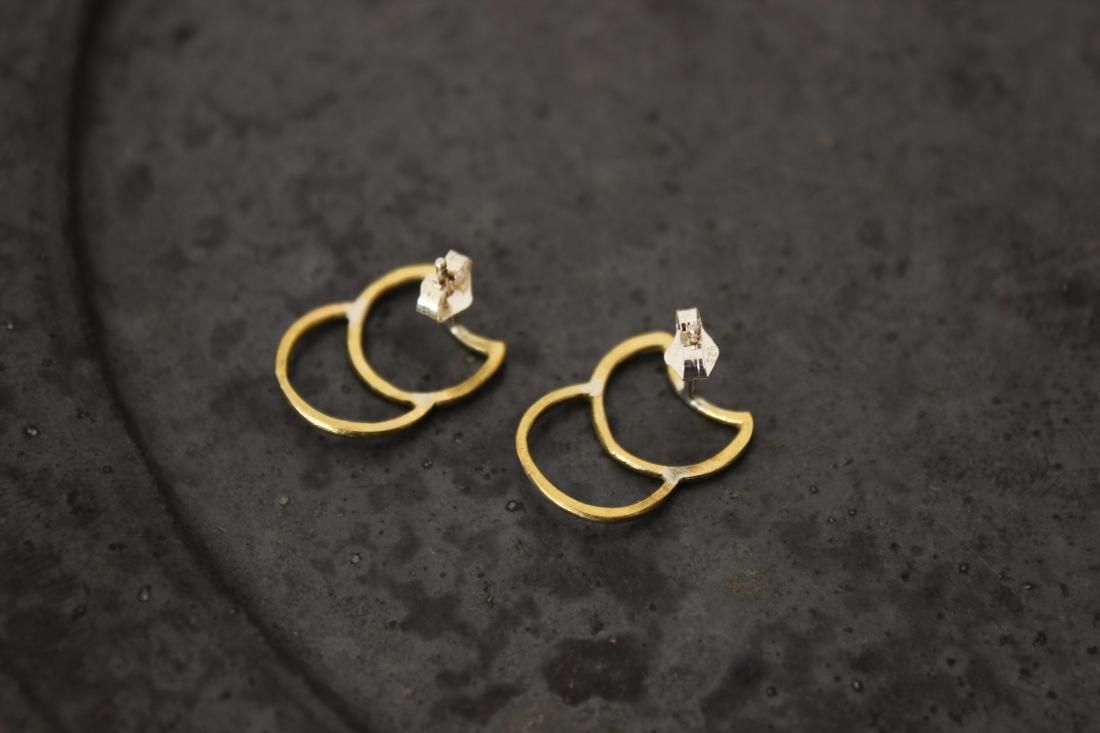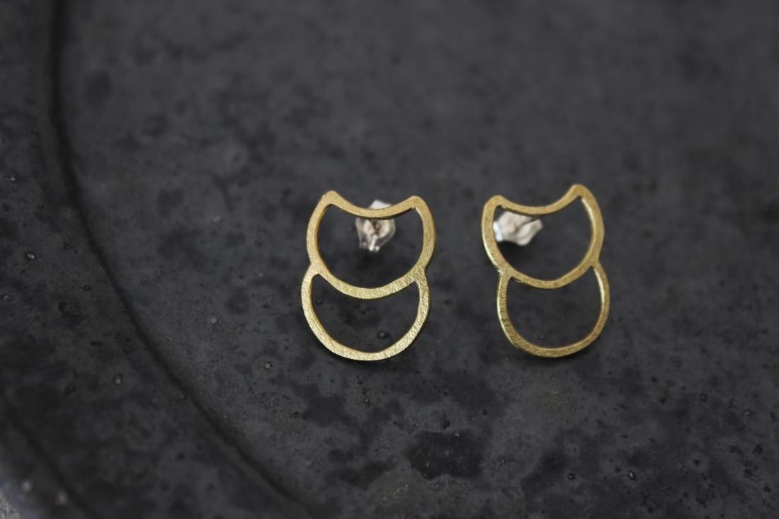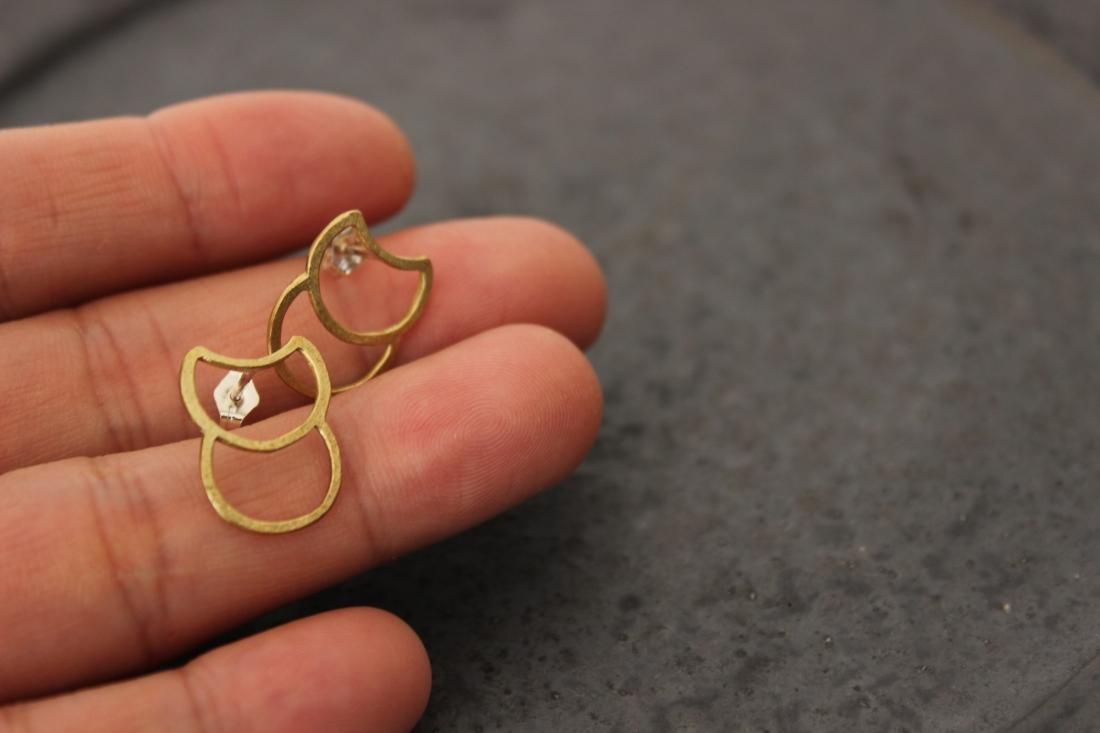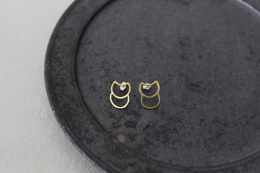 真鍮板を切り出し、様々な模様やカタチに仕上げられたピアスです。