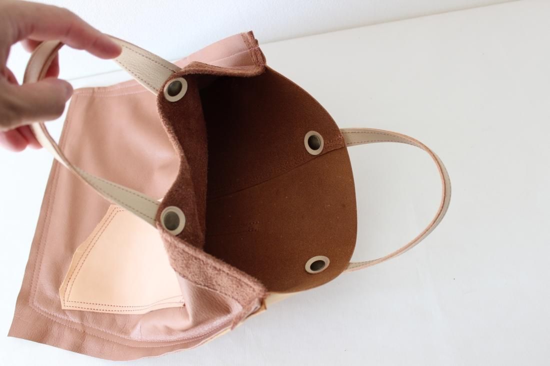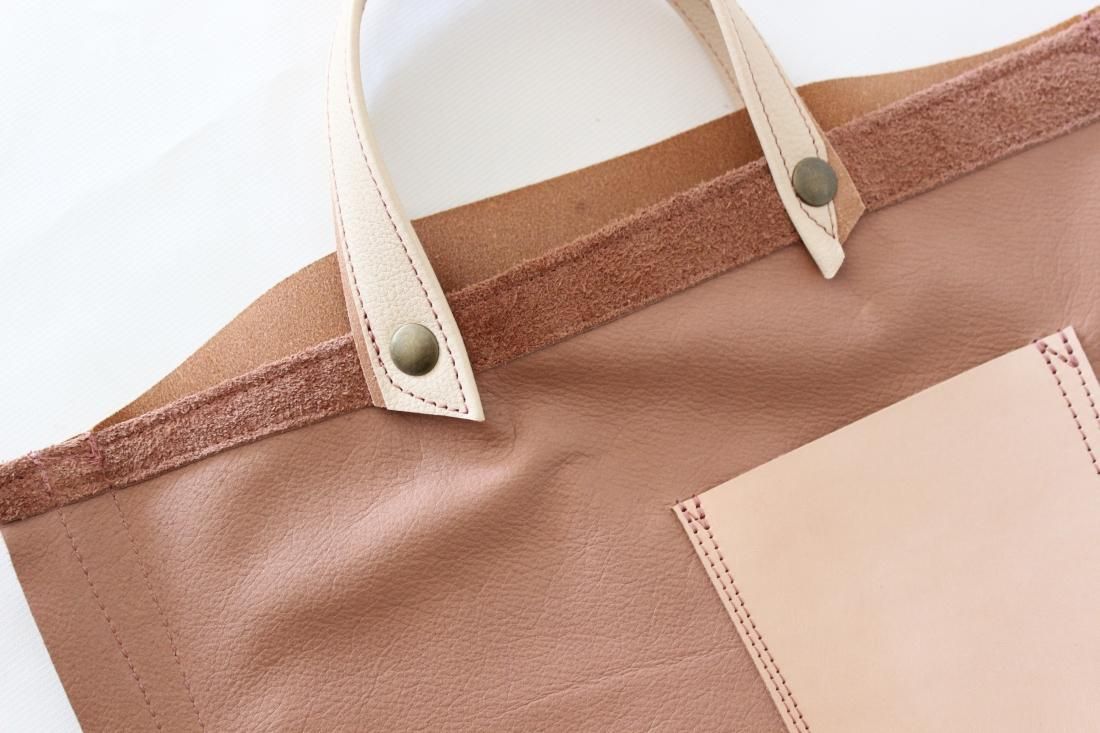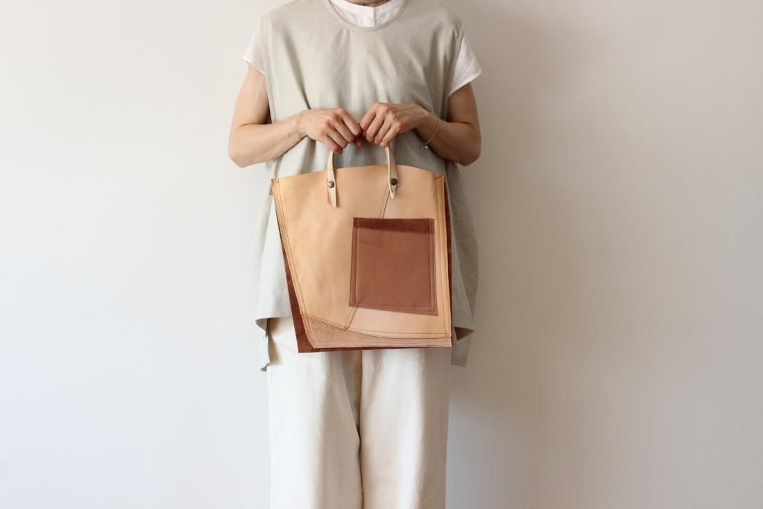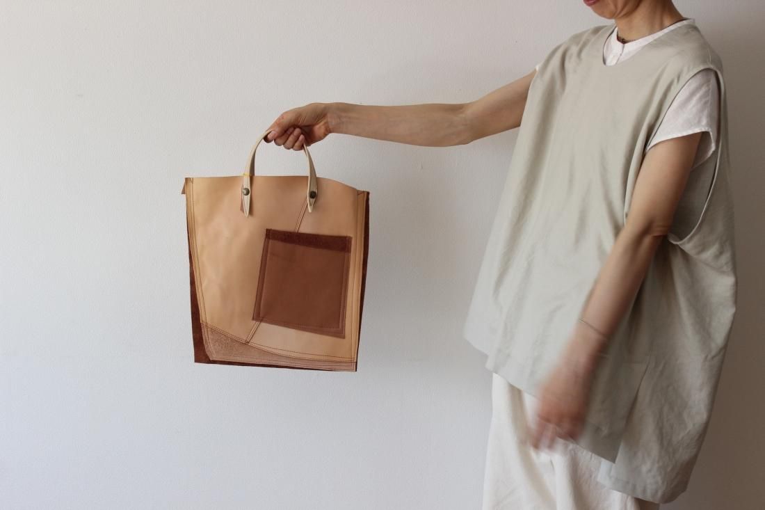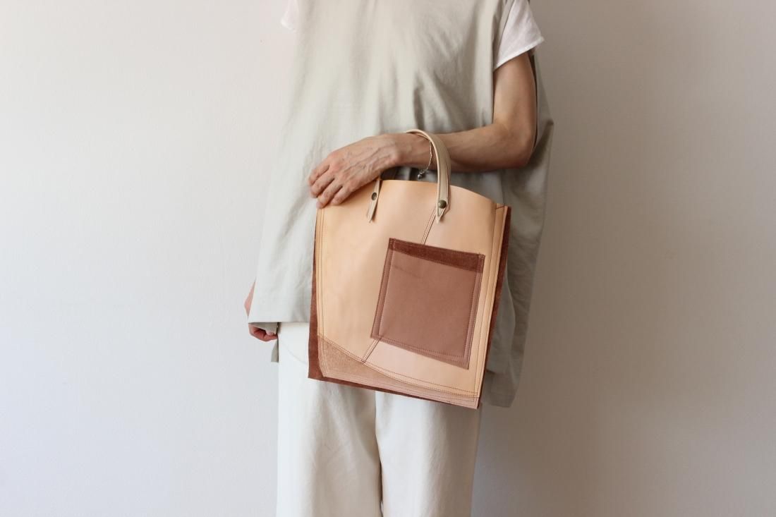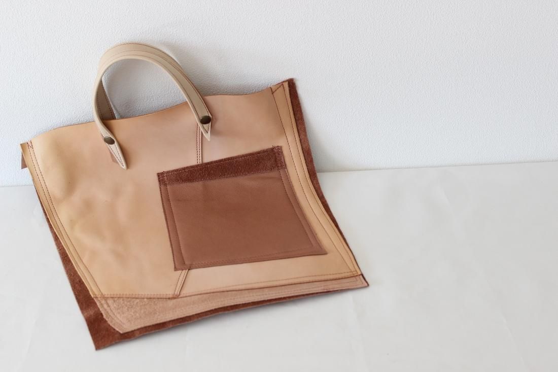 革のハギレを巧みに使い、1つのカバンに仕上げました。