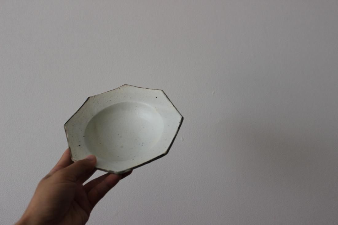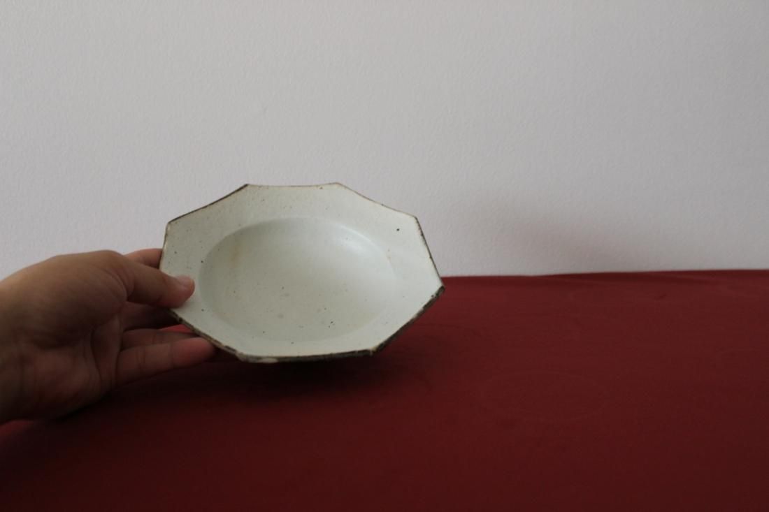 岡山在住の陶芸家十河隆史(そごうたかし)さんの粉引きの6寸八角鉢です。