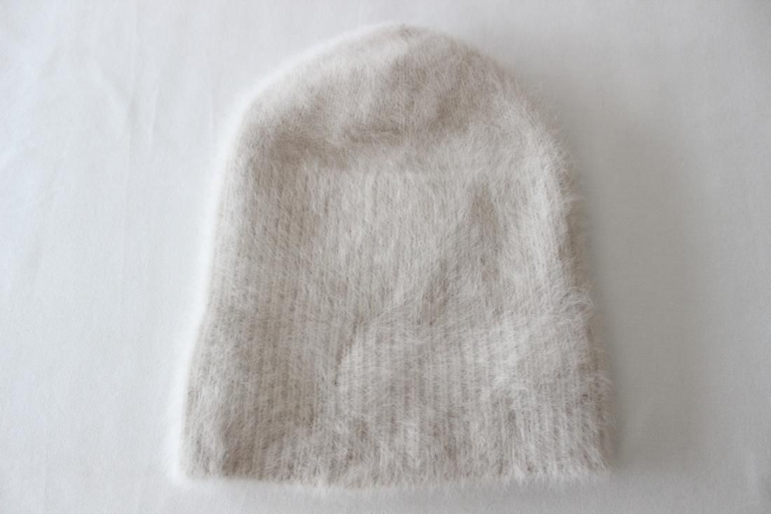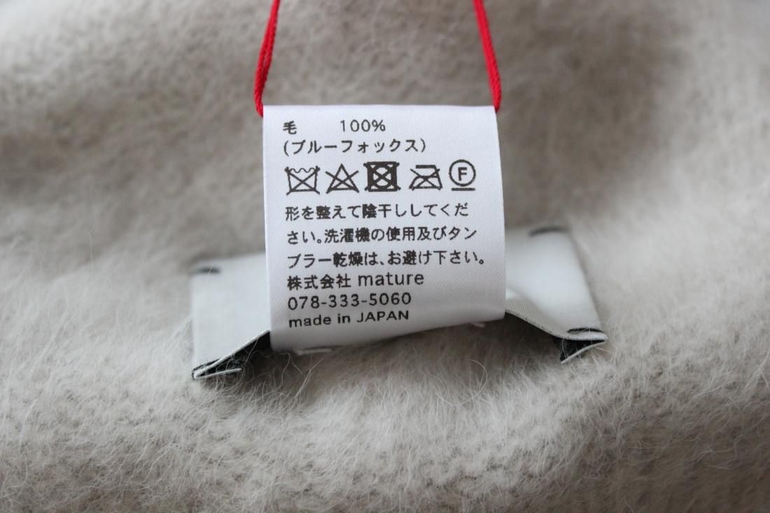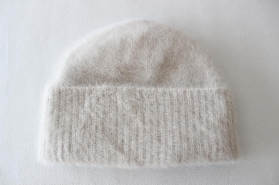 無染色のブルーフォックス100%毛糸をたっぷりと使用し、長めのリブで着用感の良いベーシックなニット帽に編み立てられています。