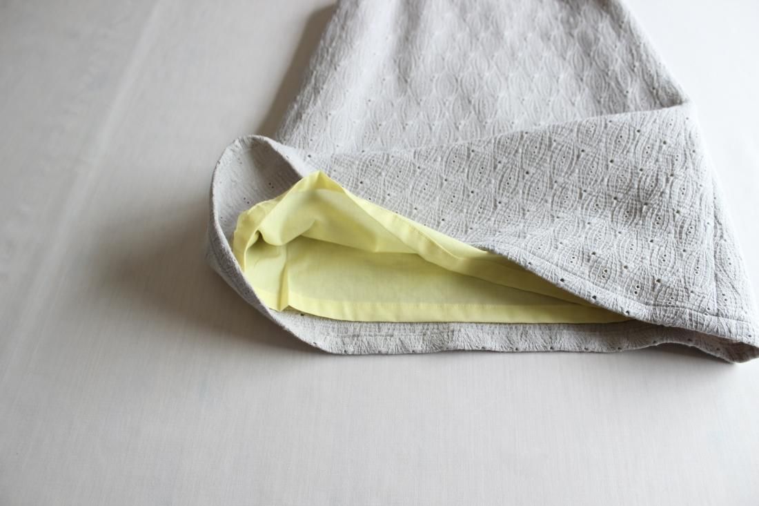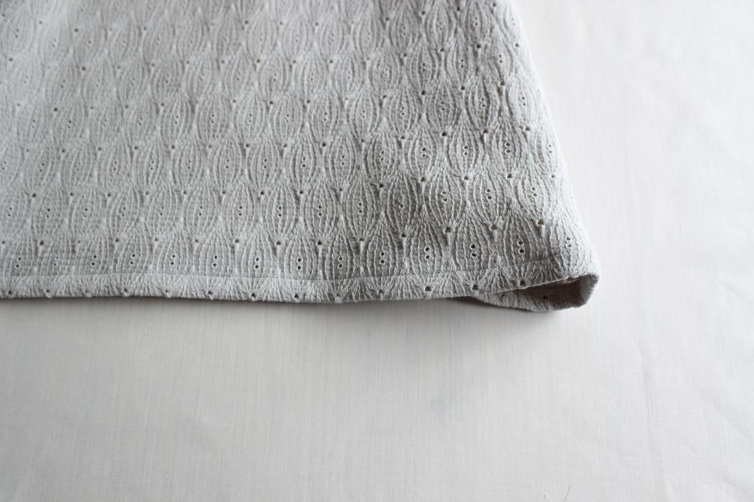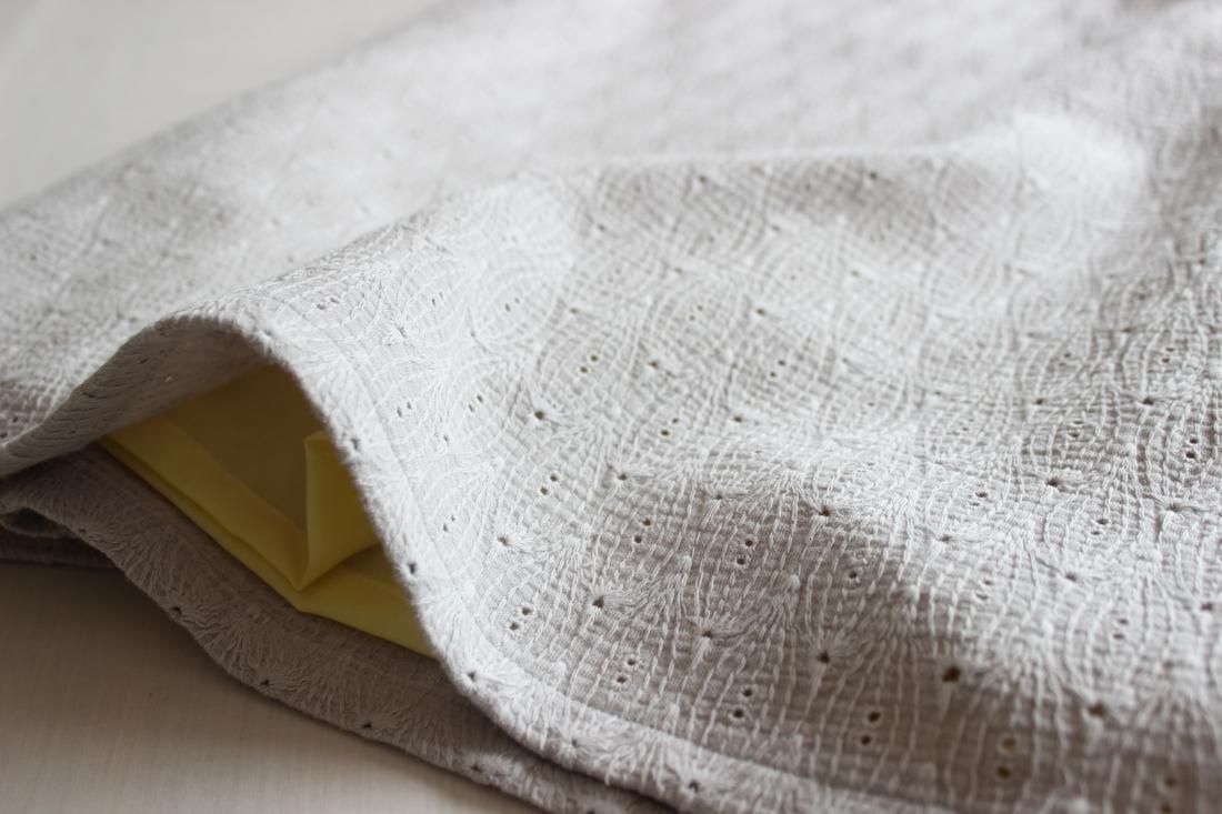 少しかしこまって、動きやすいコットンの刺繍生地が、緊張気味のカラダにそっと寄り添ってくれるよう。