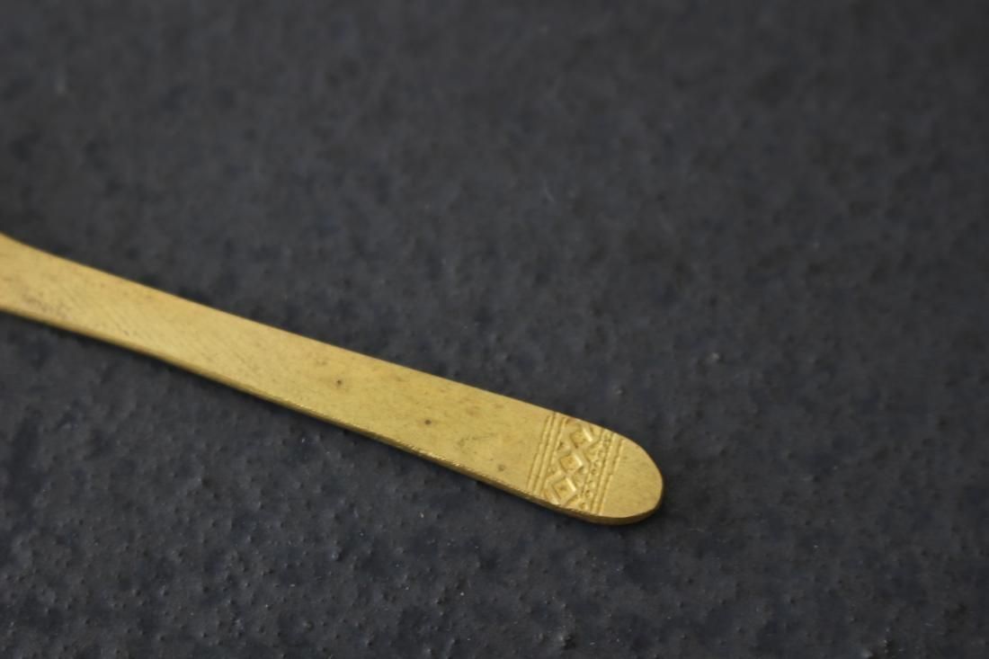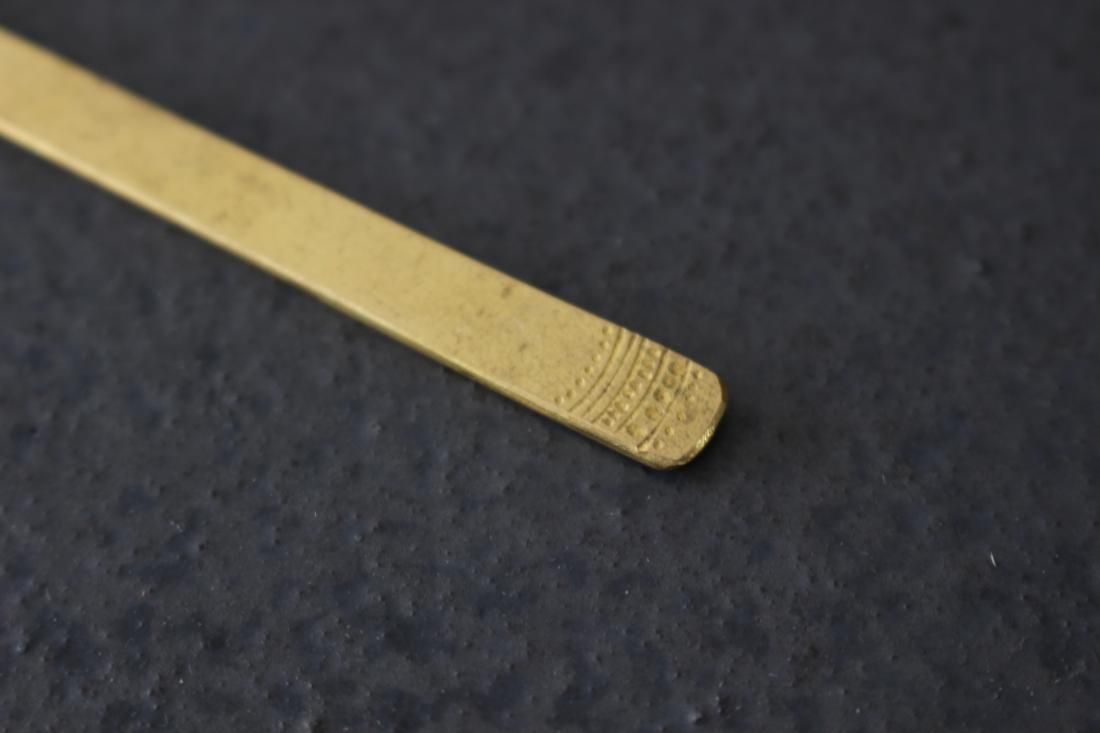 真鍮板を切り出し、先端の仕様が様々な鏨(たがね)を使い分けて、繊細な模様を打ち出されています。