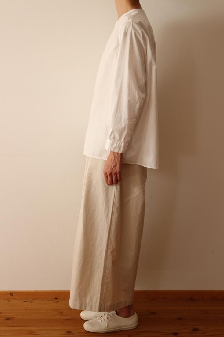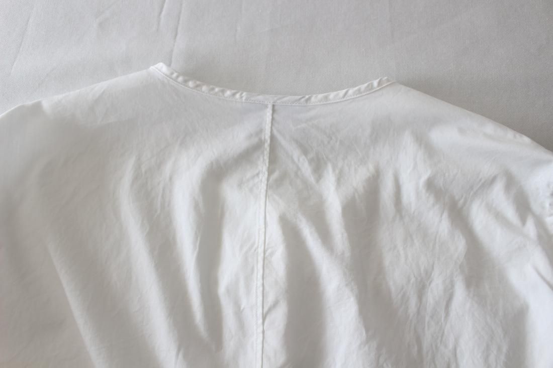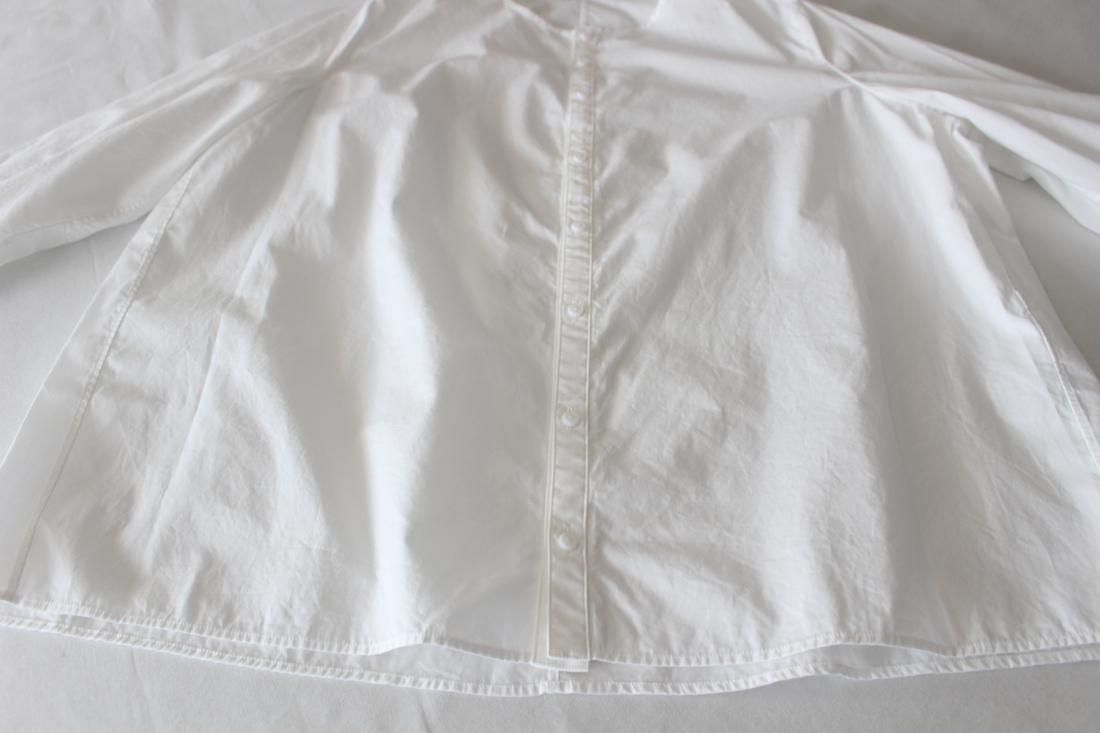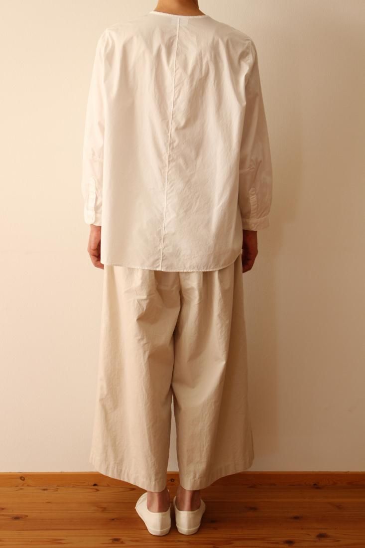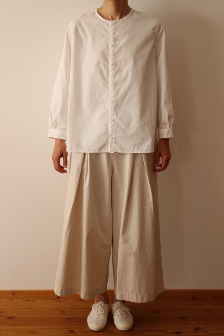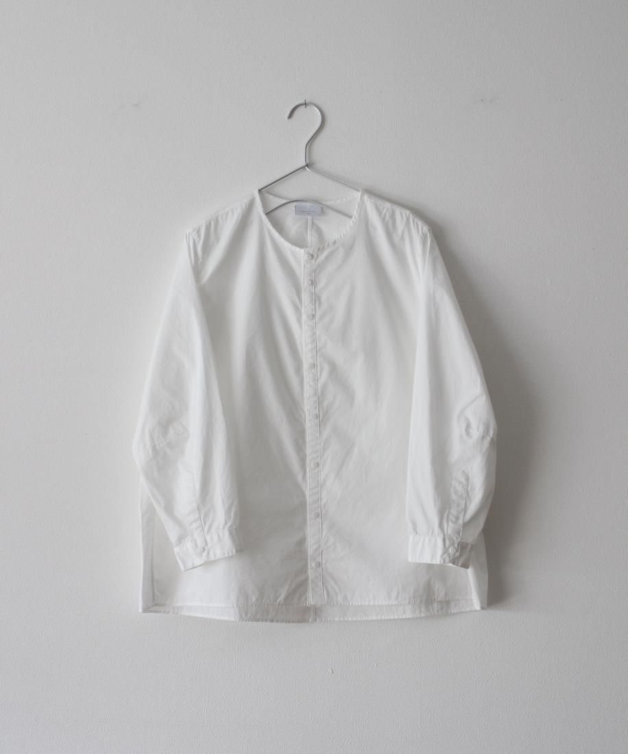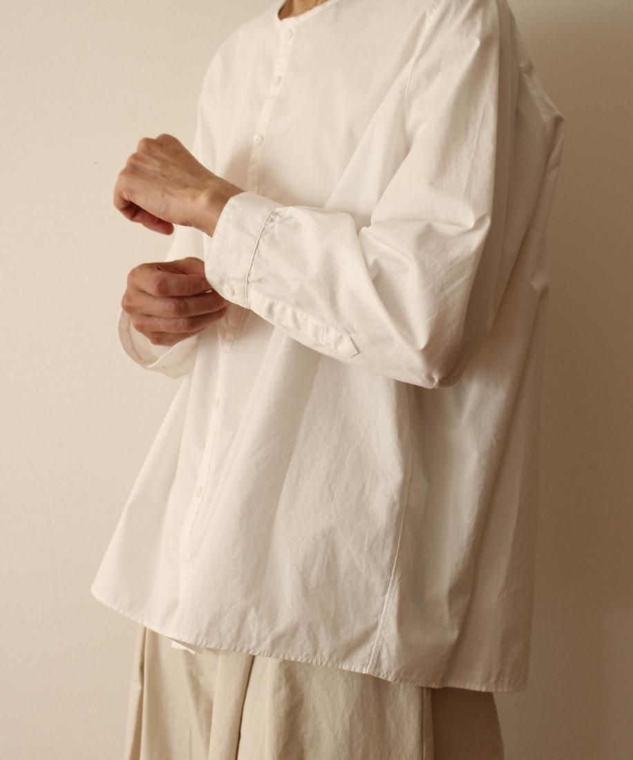 コーミングコットン・ブロード生地を使用した、レディース仕様のノーカラーシャツ です。