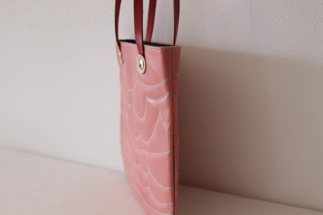 プクッとした表面のキルティングには本革を使用しており、仁子鞄オリジナルのキルティング革鞄です。
