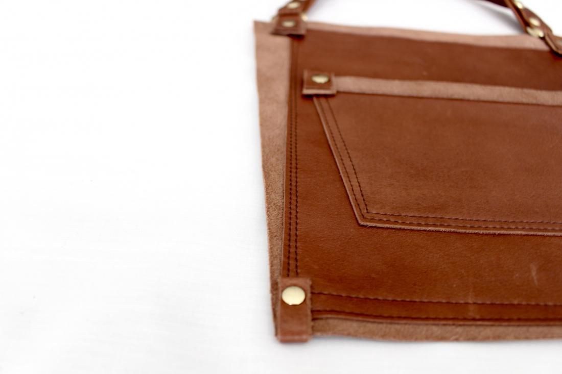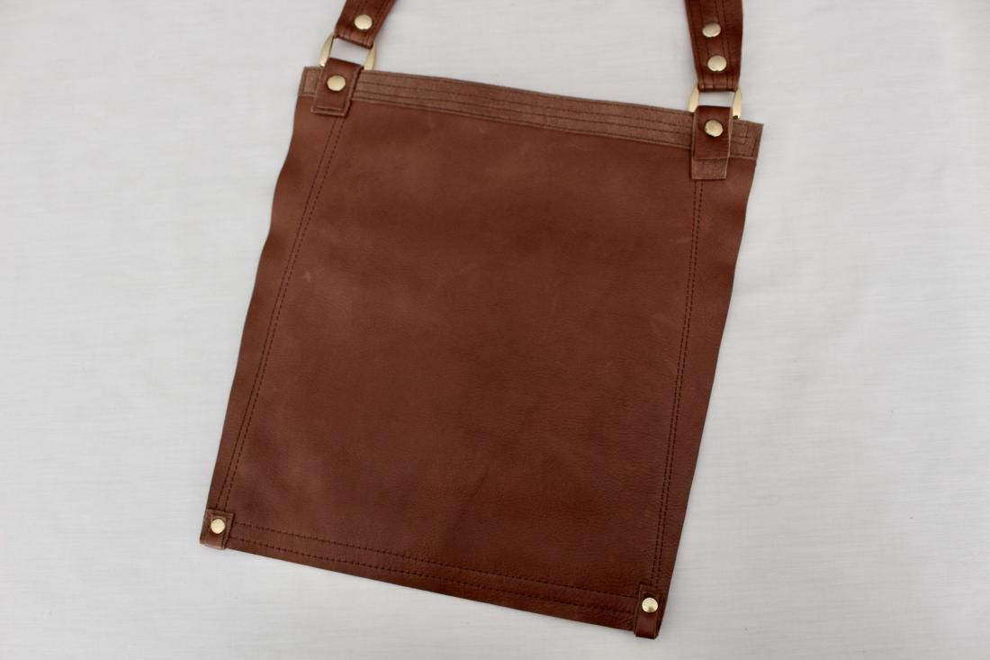 本革を重ね、自由にミシンを走らせて作ったマチなしの革鞄です。