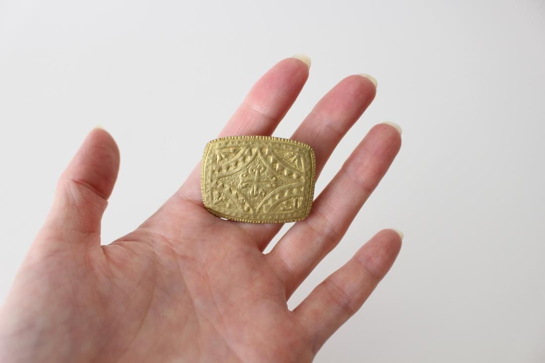 ひとつひとつ打たれた点や線、道具を使って丹念にたたくという作業と時間の重なり、手仕事の美しさを身につけて味わうことができる鍛金作品です。