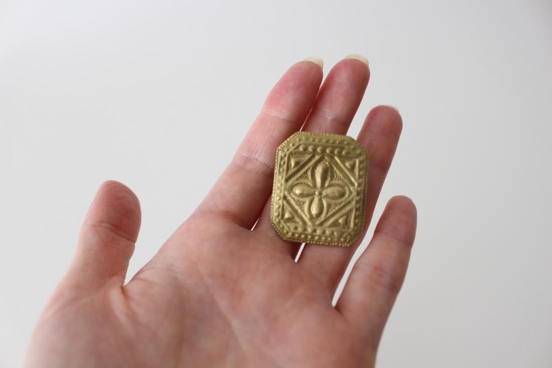 ひとつひとつ打たれた点や線、道具を使って丹念にたたくという作業と時間の重なり、手仕事の美しさを身につけて味わうことができる鍛金作品です。