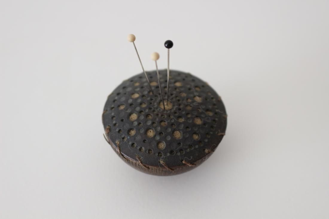 小さな穴が施された針刺し。眺めているとうっとり見入ってしまいます。