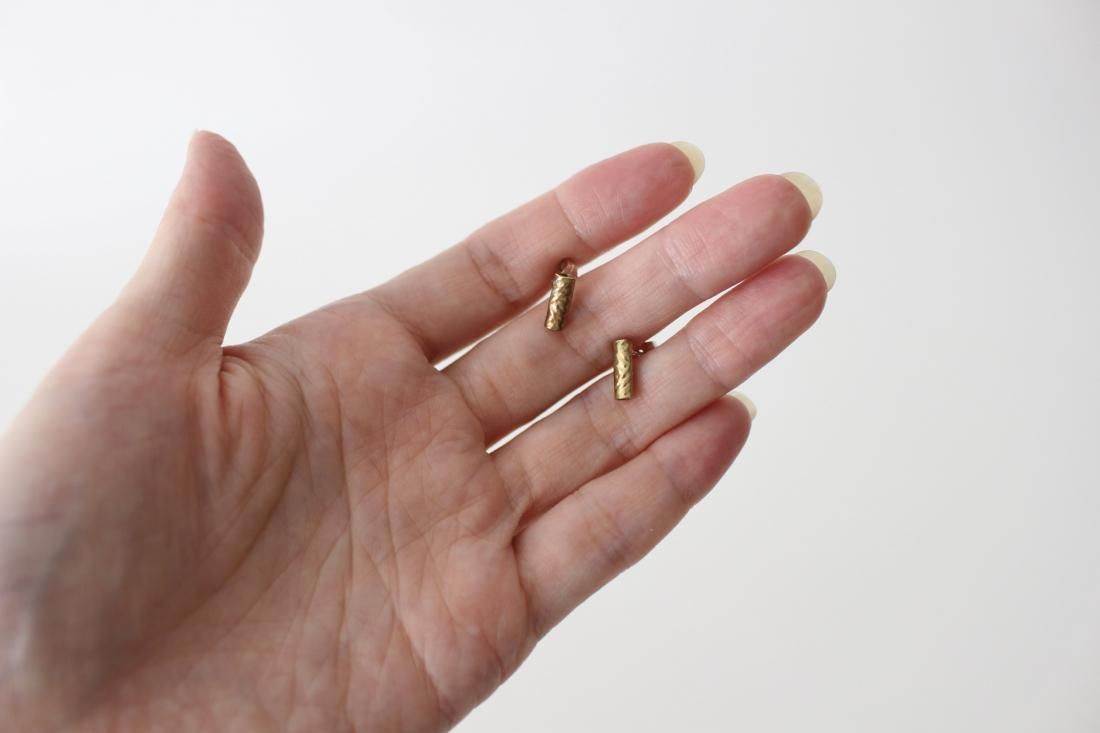 模様を施された華奢なパイプのモチーフが味わい深い鍛金作品。