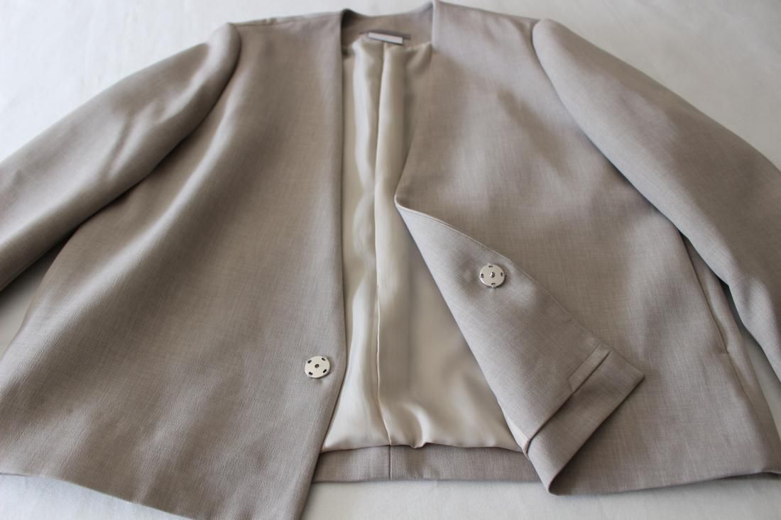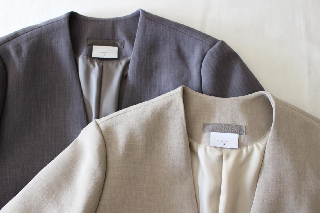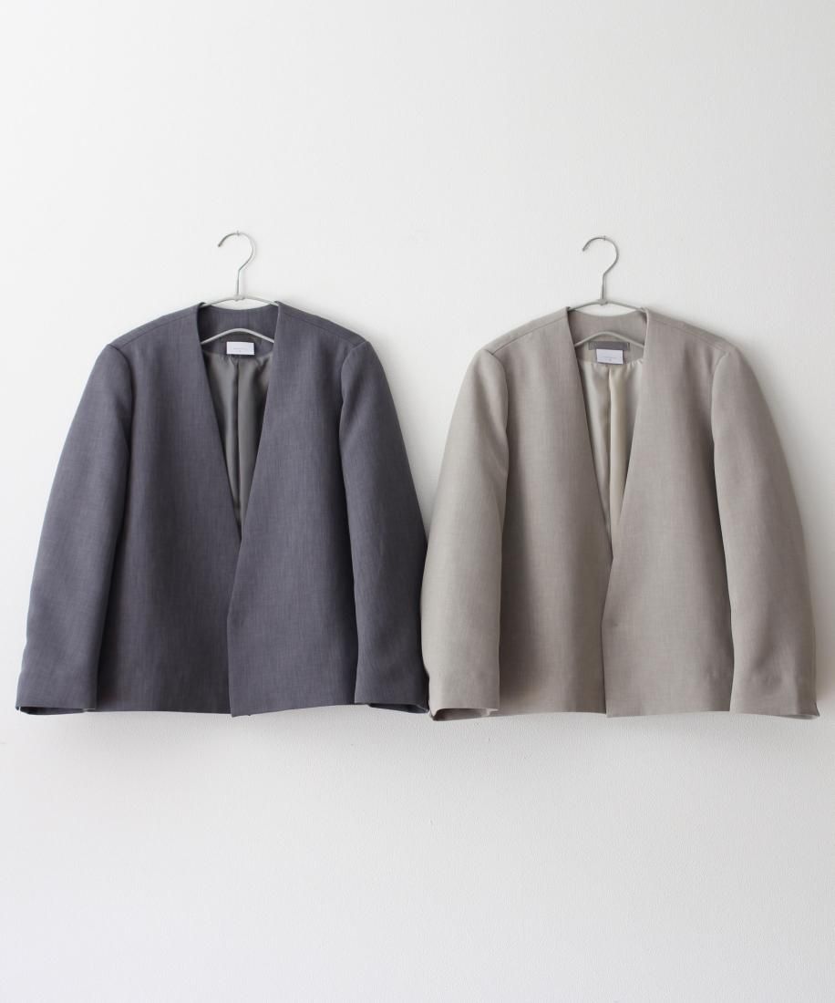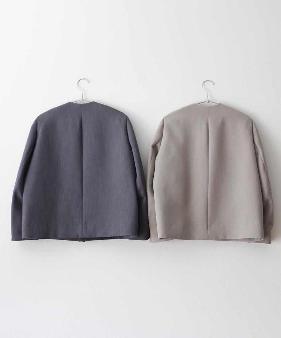 ポリエステル・ドライダブルウェザー生地を使用した、レディース仕様のノーカラージャケットです。