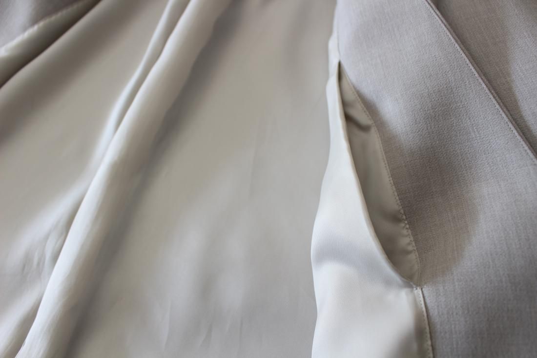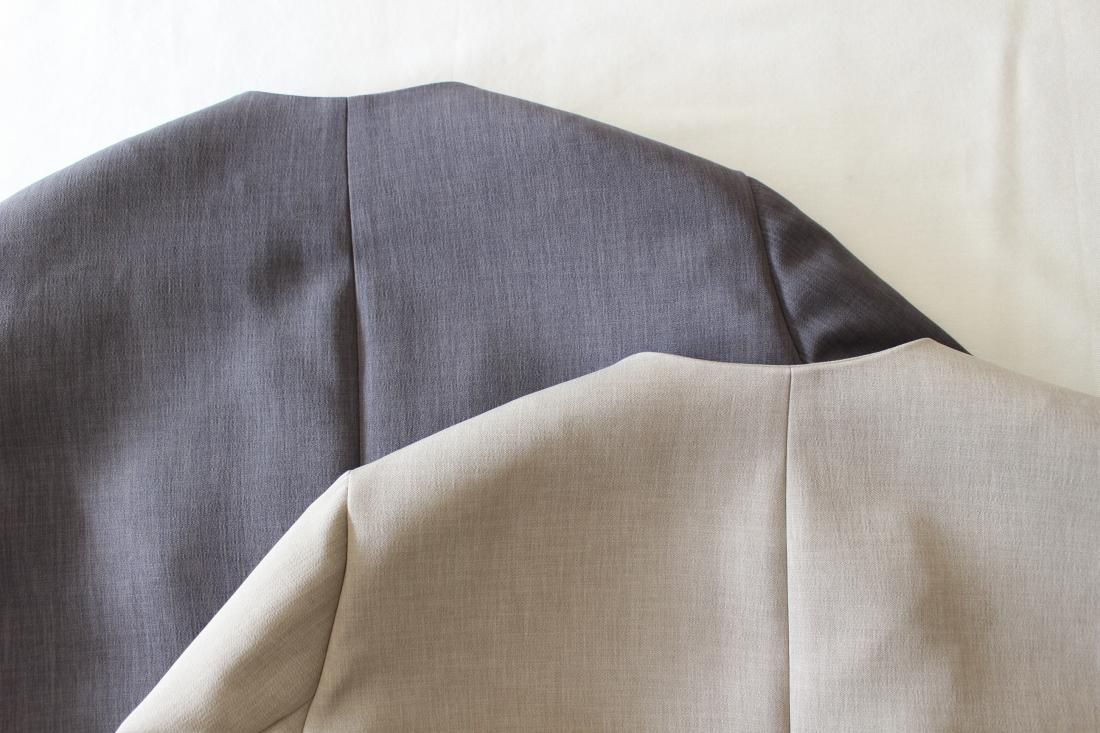 ムラ感のあるドライタッチのポリエステル糸の二重織生地は、とてもしっかりした厚みとハリがあり、皺になりにくく、ピリングも出にくい扱いやすい素材です。